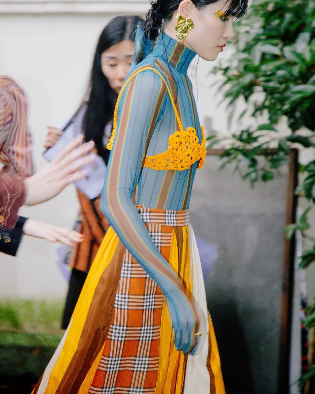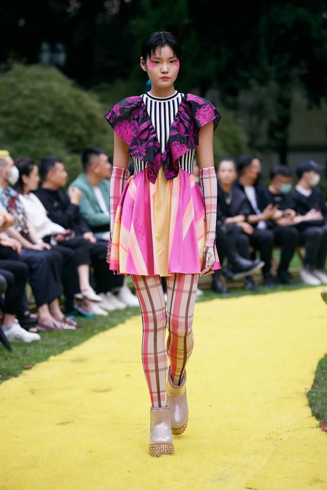 强劲的视觉冲击,让SHUTING QIU富有张力的美学融入在服装之中,多种色彩与花样的融入更是将繁杂深深的植入到面料之中。