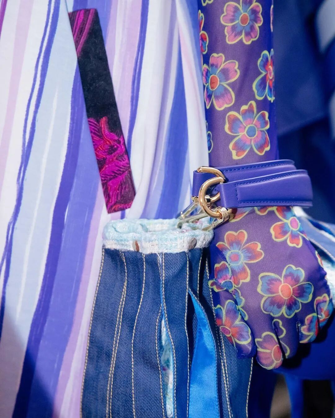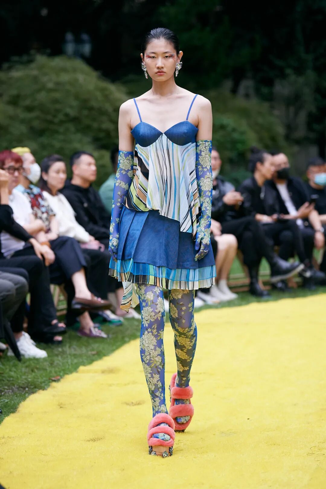 与此同时, 回忆里花与水相逢了,设计师便将回忆中的花卉分赠给了湖与烟雨, 因此在SHUTING QIU 2022春夏系列,会见深蓝、碧蓝、湖蓝、月白蓝等色。