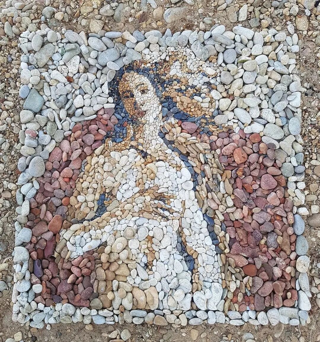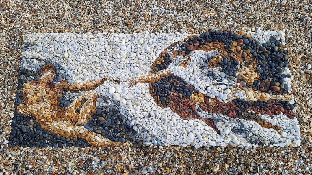 Justin Bateman灵感来自西藏僧侣的精神实践,他们用沙子创造出非常详细的曼荼罗,然后将作品摧毁。这种做法是对生命无常的提醒,这也是Bateman探索的一个主题。他通过收集在自然界中的天然彩色鹅卵石,用这简单的媒介重新创作大师的作品,尽可能地减少对自然的影响,将高雅艺术与低俗艺术联系起来。