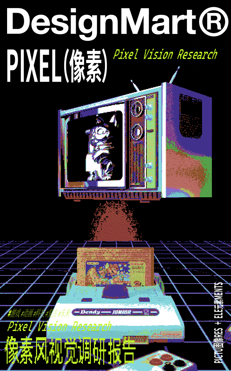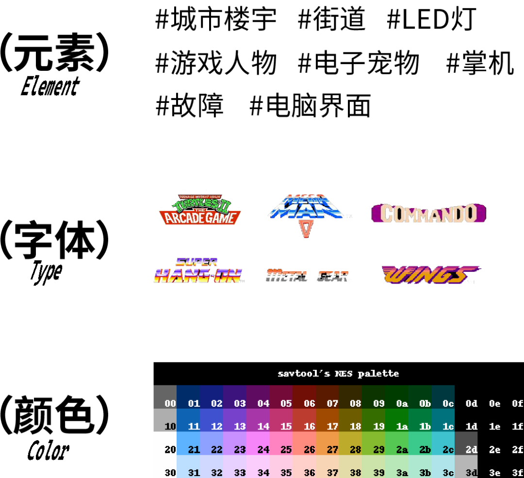 现代像素风格起源20世纪80年代,1983年任天堂发行的第三代家用游戏机Famicom问世,机身以红色和白色为主,被称作“红白机”,新机型虽然令游戏创作丰富起来,但储存空间的限制仍难以突破,如何兼顾视觉与操作体验呢?一套轮廓清晰,弱化细节,色彩对比强烈的视觉图像创作规律在探索中逐渐明朗,现代像素风格由此诞生。