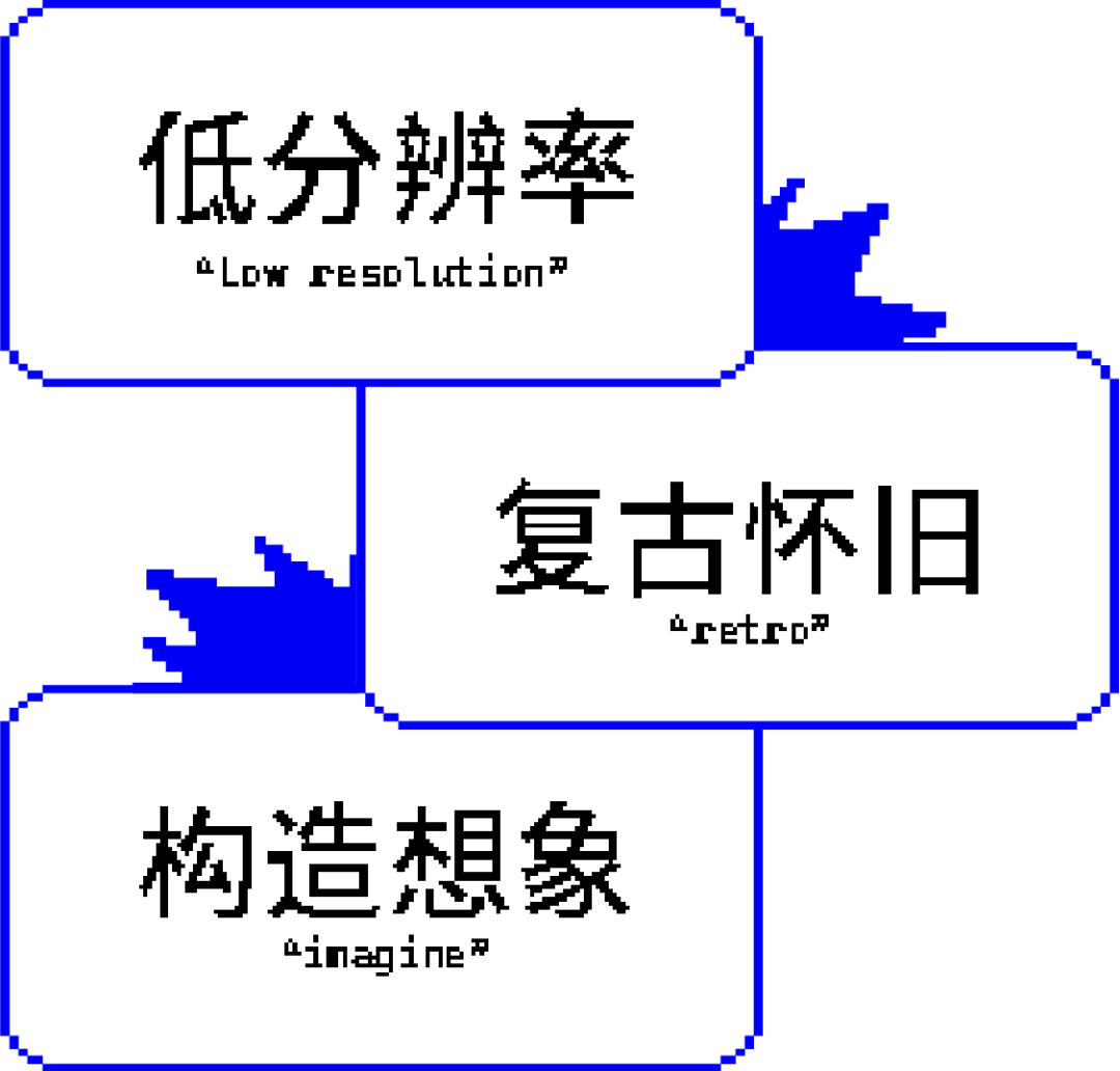 此外,为了用有限颜色在平面内创造更丰富的视觉体验,通过“色彩抖动”即在相邻像素间地加入彼此的颜色,两种颜色在视错中融合起来,以增强画面层次和立体感。
