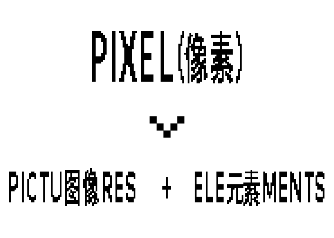 PIXEL(像素)=PICTURES(图像)➕ ELEMENTS(元素),是将图像元素化表现之意。图像在感光元件感光后转化输出成一个个单位点,一个点代表一个像素。如果从元素倒推回图像,艺术家以单个像素点(1px)为单位绘制创造出的数码图形,即为像素画,利用共通“点阵原理”创造出的产品,即为像素艺术品,它们共同构成了像素化视觉风格。