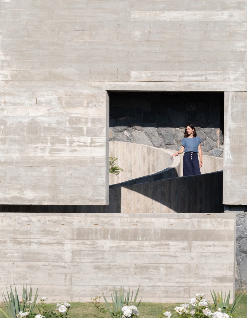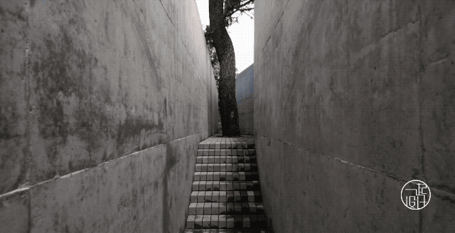 模块化的混凝土立面错位连接在一起,方正感十足,并将视线导向「内部」▽
