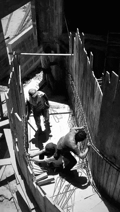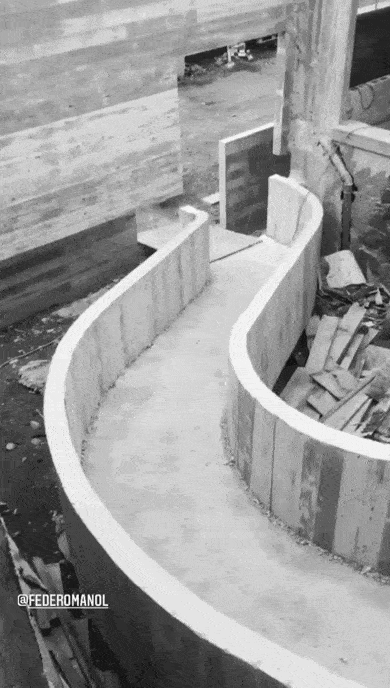 这条曲线的廊道由工人现场浇筑而成▽