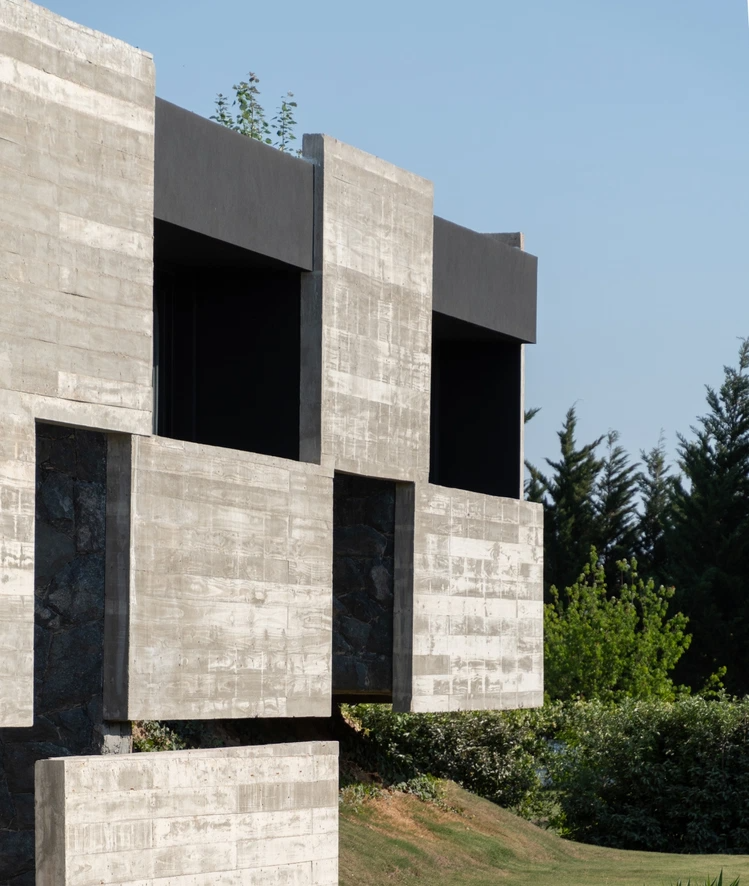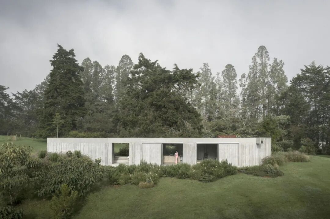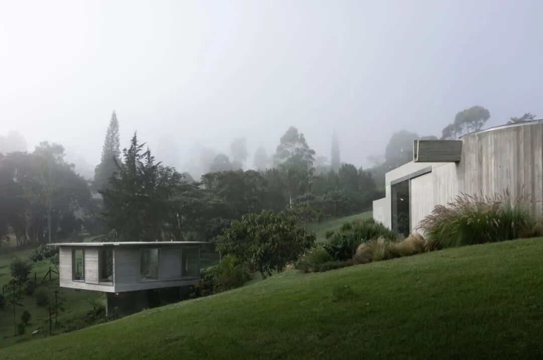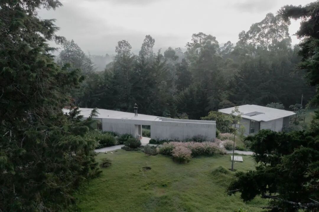 这座裸露着混凝土表皮的住宅由LCLA Office设计,坐落于哥伦比亚的一片郊区林地之中。设计师将建筑根据不同的功能属性,划分成相对独立的两个体块,并用花园将其串联起来,从而保持视觉上的整体连贯性。