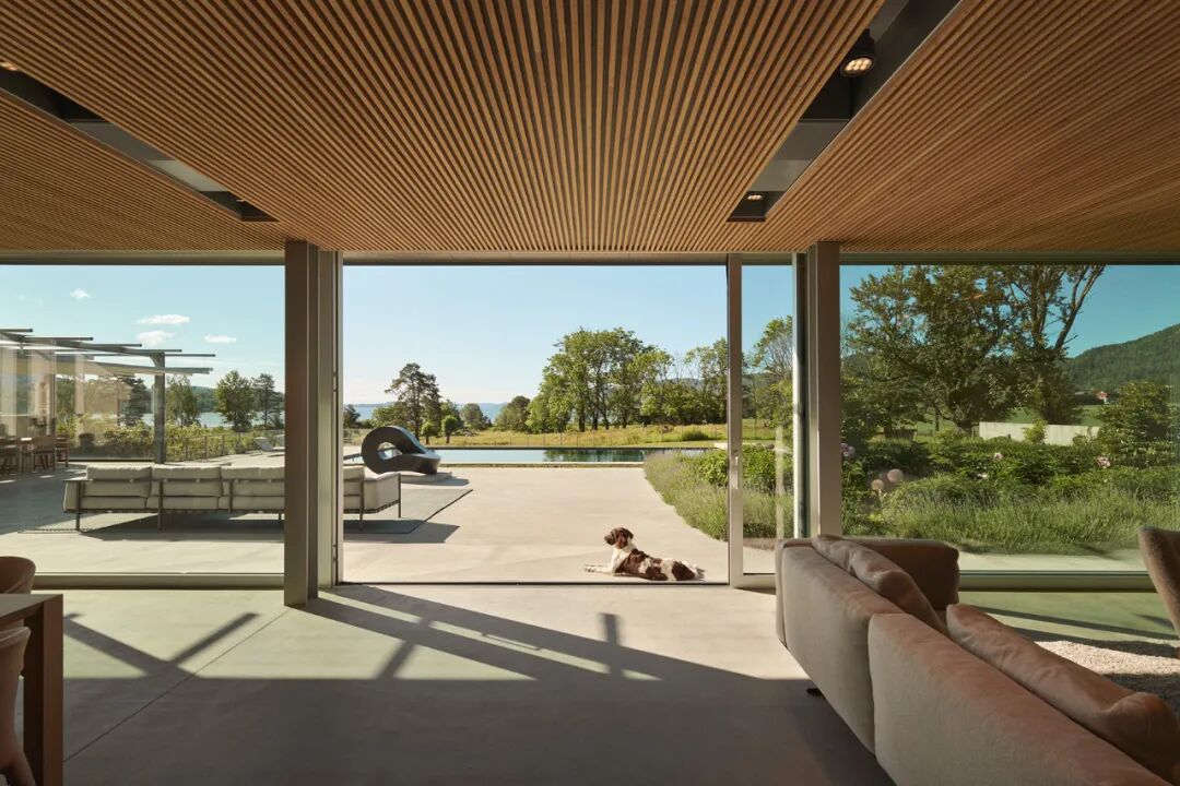 住宅的室内大面积的玻璃幕墙令居住者足不出户也能欣赏到自然的美景,这种轻松闲适的氛围能够使人安静平和,享受生活所赋予的岁月静好。