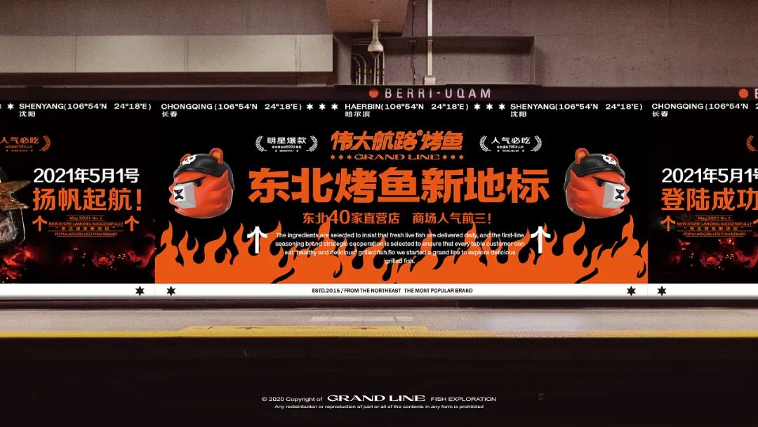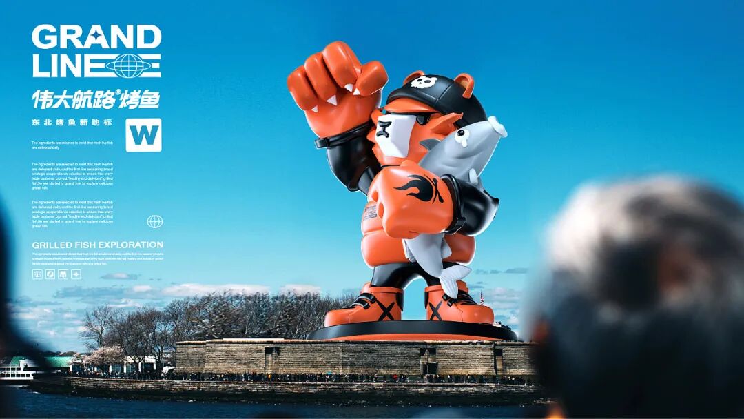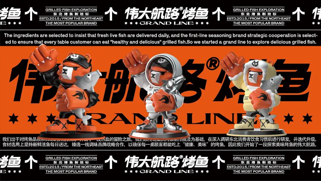 伟⼤航路是⼀家烤⻥连锁品牌。制定品牌IP化战略,深度挖掘品牌名背后的IP⽂化⺟体,探索出以热⾎冒险为主题的“海盗”亚⽂化,告知消费者“伟⼤航路坚持新鲜的、健康的研发理念,对烤⻥品质和美味的不断探索”的执着精神、新潮热⾎的品牌形象。