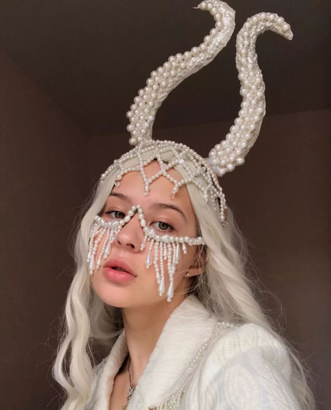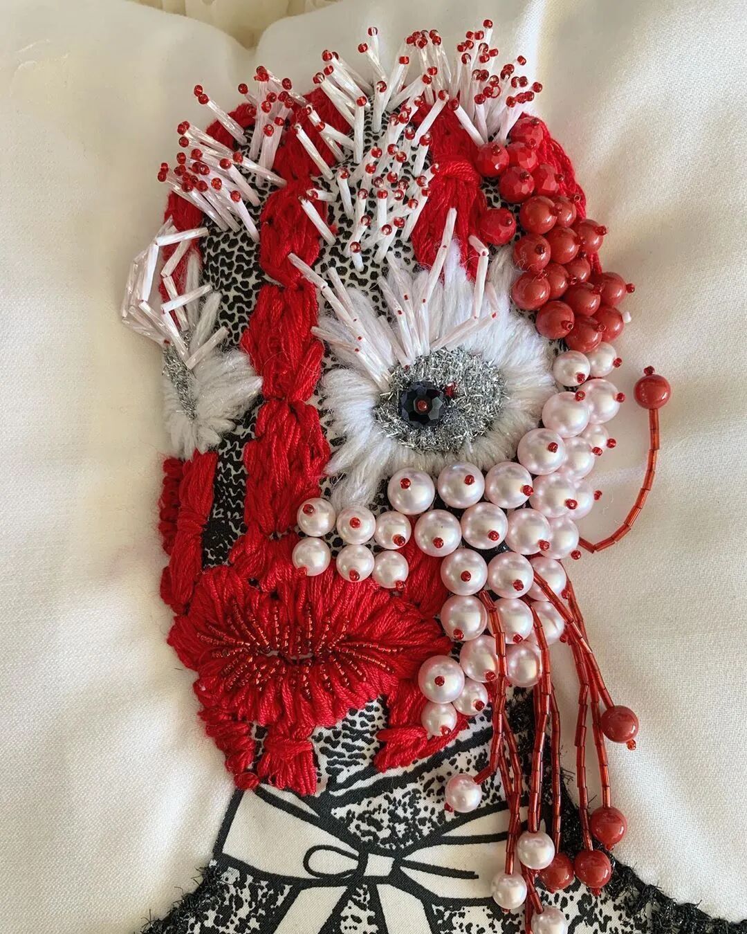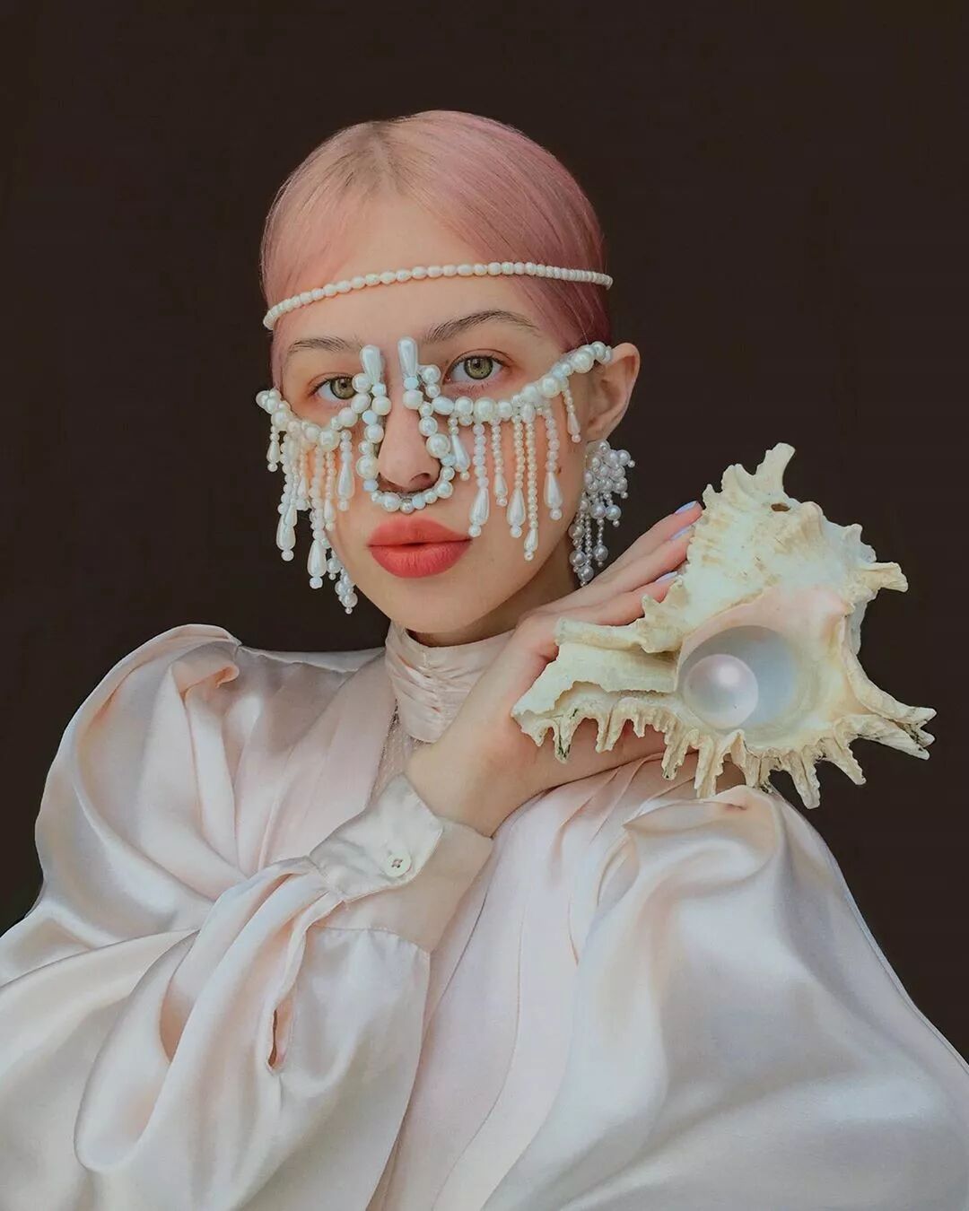 來自俄罗斯的Polina Osipova(@polinatammi)是一名Ins上爆火的网红设计师,通过结合繁杂的珠宝设计与刺绣手法,创作出了一个个面部装饰作品,每一个都像是俄罗斯神秘主义和18世纪洛可可的结合。