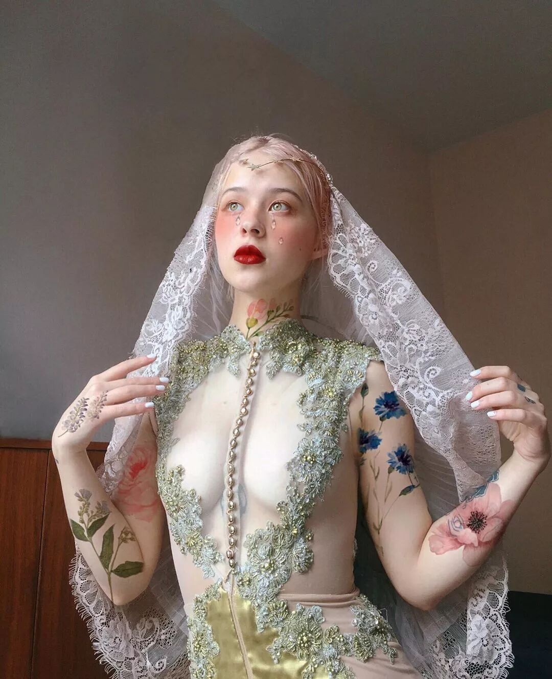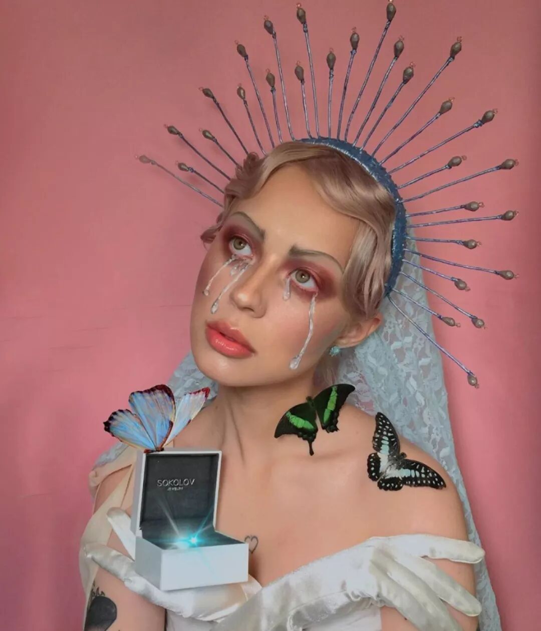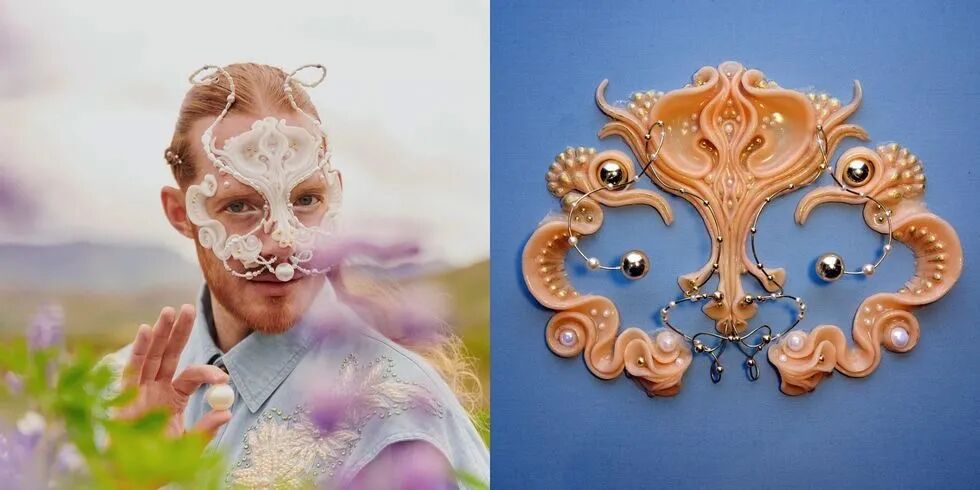 來自俄罗斯的Polina Osipova(@polinatammi)是一名Ins上爆火的网红设计师,通过结合繁杂的珠宝设计与刺绣手法,创作出了一个个面部装饰作品,每一个都像是俄罗斯神秘主义和18世纪洛可可的结合。