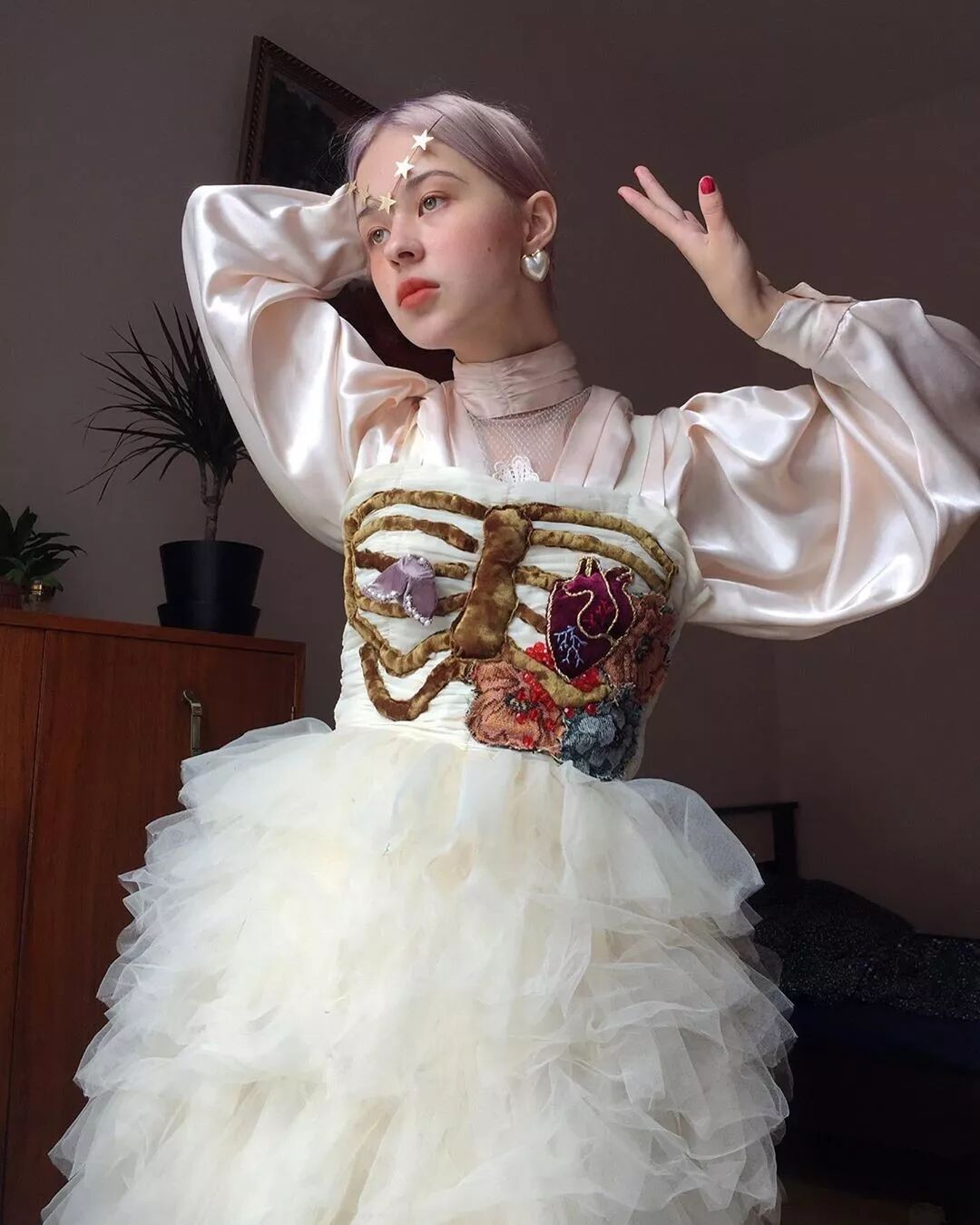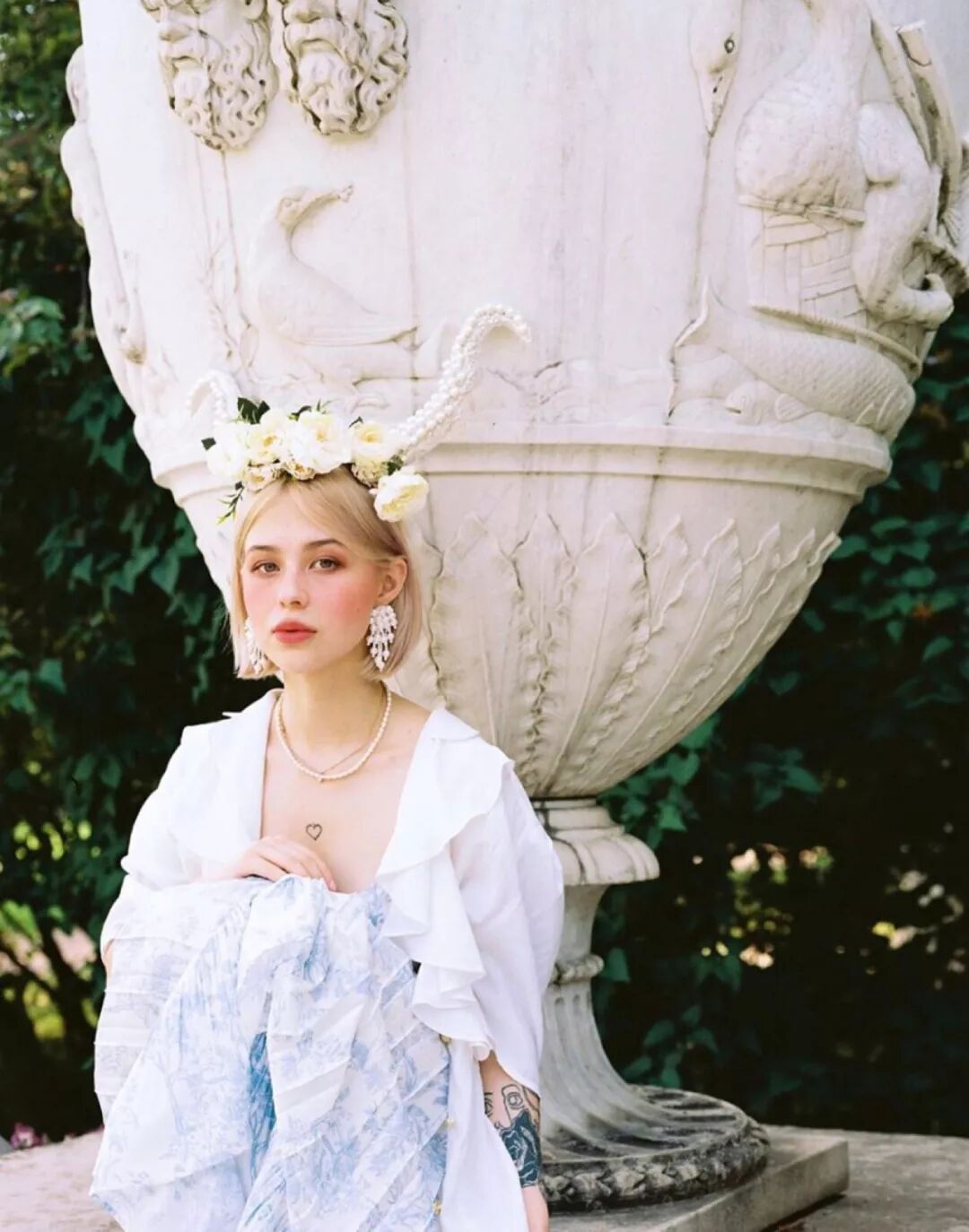 在她的ins里你会看到很多华丽的DIY饰品、抢眼的珠宝、还有大量蕾丝与薄纱服装,宛如活在18世纪的洛可可时期。