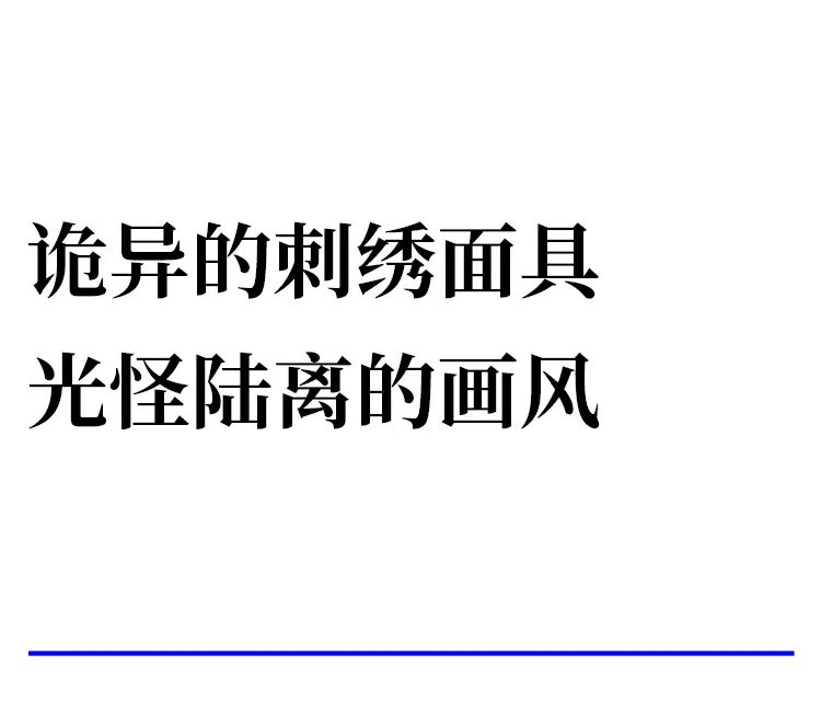 Jame Merry的作品也在V&A美术馆进行展示,还与摄影师Nick Knight主导的Show Studio密切合作,各种古怪,画风清气又绚丽的刺绣面具具有强烈的视觉效果!