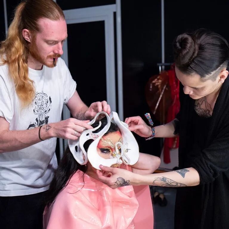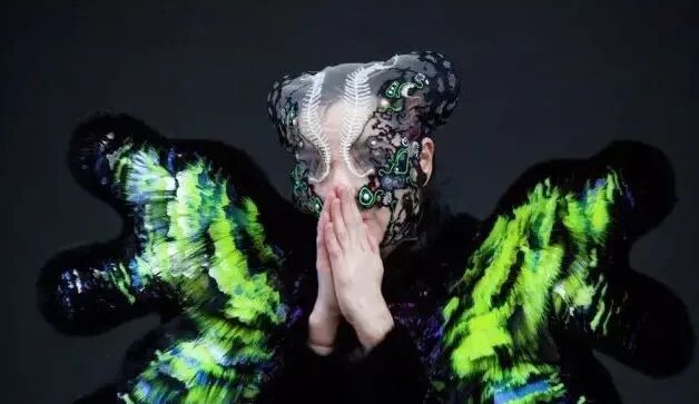 让人印象深刻的头罩出现后,人们开始关注这些作品背后的制作者的真面目,穿梭于纽约与冰岛两地之间的Jame Merry因为机缘巧合与 Björk 结缘,并致力于制作舞台配饰,一做就是六年之久。