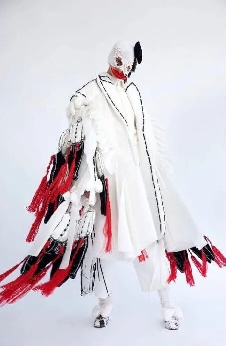 后来他为冰岛歌手 Björk 制作了刺绣蛾型面罩,技艺高超令人窒息的手工艺品让他一夜成名。