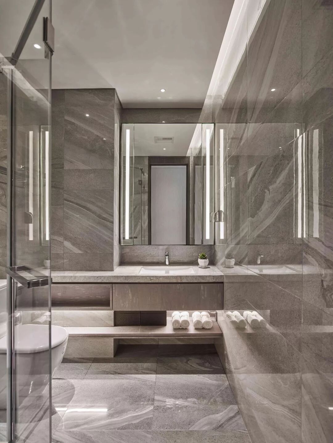 作品集2024-02-27 用精致简约的设计,打造气质人文住宅! 西安,一座繁荣了千年的古都,时代更迭,虽已不再是天下政治经济文化中心,但其所承载的历史文化和精神内涵依然是中国最有重量的存在之一,不论是现代钢铁森林的覆盖还是新旧建筑的融合,它依然是一座有着浓厚古典韵味的城市,时间逝去,影子还在。金茂府样板间便是这样一处传统雅致,却又极具现代化审美的空间。 以内敛人文简约的木纹为基底佐以自然调性,将生活美学融于其中,凝聚家庭核心的力量。 客、餐厅天花造型框出生活场景。 温润气质的木皮拉伸空间形成场域核心量体的质感,下方金属踢脚线与光带的延伸引领看似各别独立空间又互有的关系,刻意划破区域界线的墙面,采用木纹及富有简约图文肌理的壁纸映衬立面背景,使得空间具备有更大的包容力。 不对称的玄关端景设计拉开序幕,构成公共领域里动线的关系轴线。 呼应着生活即是艺术的空间品味,沿着地坪石材纹路步入室内,望左映入眼前的是打破室内与室外界线的大面体开窗,将客厅窗外的景色化成一幅立面的画作,随着时光荏苒、四季变换,与家人在此共享窗外自然绿意所带来的美好生活景象。 望右即是餐厅空间,以餐桌为中轴,对称式的金属玻璃拉门于此形成交厨房互动的场景,让彼此在此分享生活,营造浓淡舒适的空间色调,每一个瞬间都是家人在此一起创造幸福生活的回忆。 通过回字型的动线设计,每个卧室拥有各自独立的空间却又有紧密的连结。推开客厅通往主卧的暗门,立面壁纸上简约的线性分割搭配温润木地板,窗外自然洒落的阳光提供主卧室温暖的空间氛围,开放式设置的衣帽空间以及double sink设计的卫浴空间,辅以浅灰色石材放大视觉感受,有如饭店式的居住体验融入其中。 廊道踢脚处镶嵌的金属细节与下方灯带搭配大理石瓷砖地坪材质铺陈,通往私领域的空间自此展开, 并将客浴建立于右侧廊道底端,木纹肌理与石材融合界面,具中式氛围的圆型金属镜框搭配独立浴柜供由其他卧房共同使用,呈现细致的生活况味。 多功能房设定以浅色木纹色系由书桌延伸至窗边卧榻,呈现淡雅人文艺术的空间,搭配窗外的阳光及绿意,在此享受私有的片刻时光。 长亲房则以中度暖灰色系做为主墙背景,沉稳的色彩计划给予安定的感受做为主要的设定,一致的线 性语汇设计自天地壁拉开空间的延续感。 本文来自微信公众号“亚太室内设计”(ID:ytsnsj)。大作社经授权转载,该文观点仅代表作者本人,大作社平台仅提供信息存储空间服务。 TAGS: 样板房生活空间设计金属 相关文章Kleoniki Andr…这是大王Day.281获奖作品《2020最佳图书…精选头像|搞怪来袭!安东尼奥·布埃诺 作品配色清新梦幻的场景插画,充…美国Jennifer Mc…【小鹏设计】设计小改/动力…【首发】地点空间丨打破空间…谢商家不坑之恩!只骗有钱人…