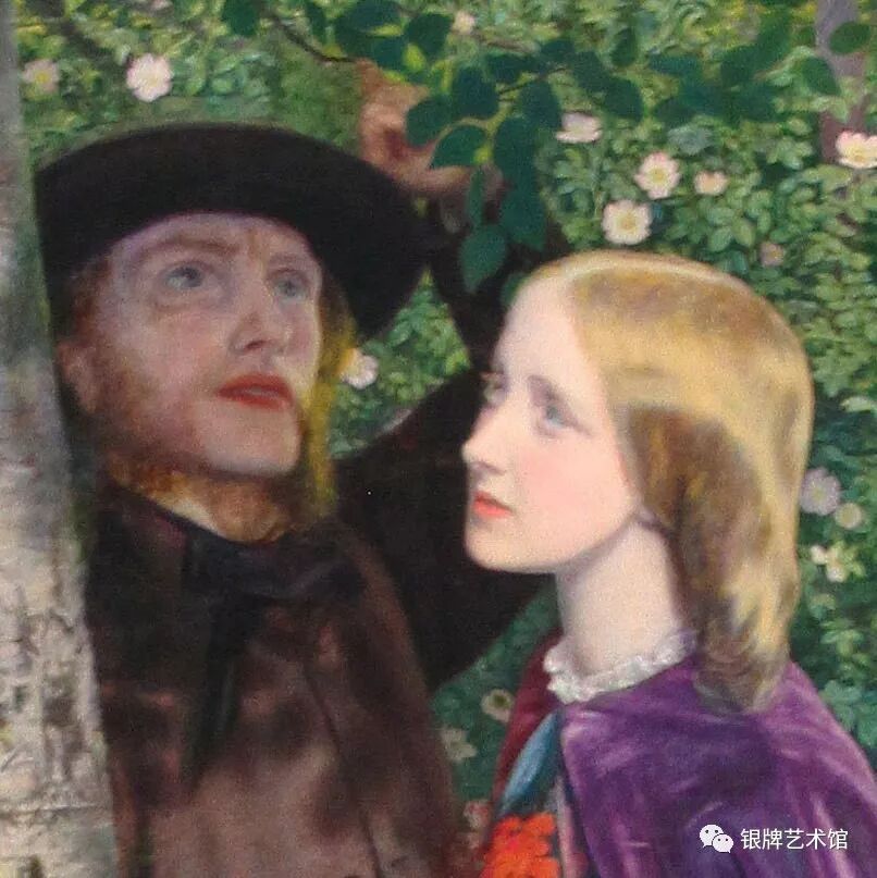 大家好!今天给大家介绍英国画家休斯创作于1859年的油画作品《永久的婚约》,现收藏于伯明翰美术博物馆。