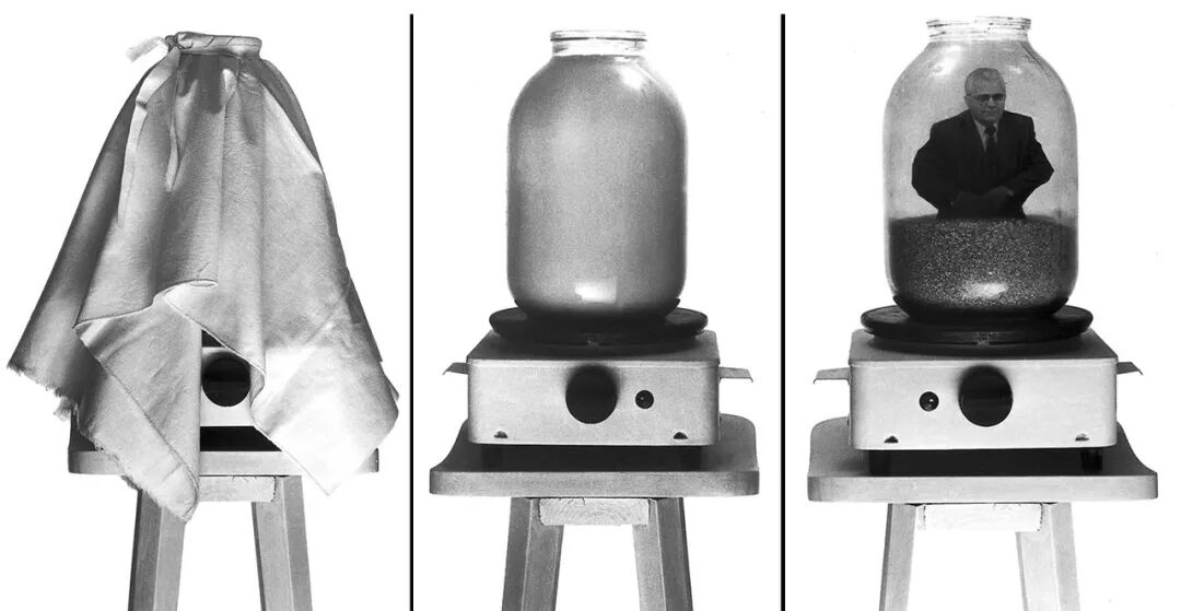 c)从整体上看,这一行动说明了科洛博克镜的概念,围绕自己的轴不断替换,将错误的反射投射到周围世界。5