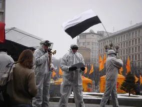 SOSka团体的行动作品《They Are on The Street》对后橙色时期很重要。在一轮选举前夕,艺术家们戴着乌克兰主要政治家的面具在街上乞讨。12