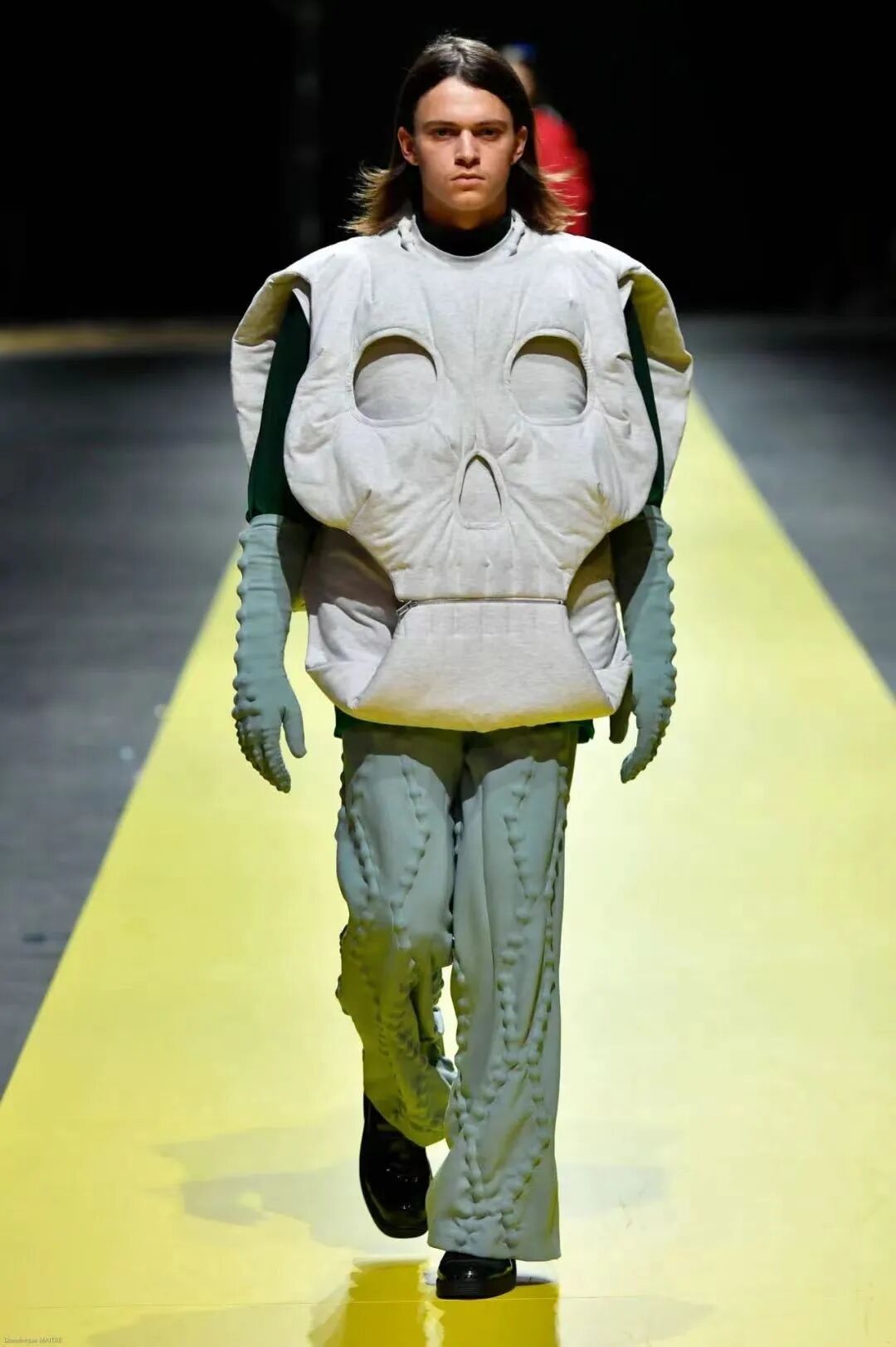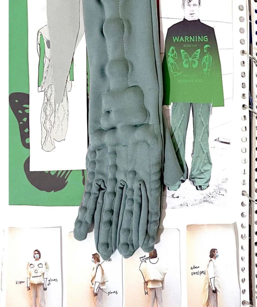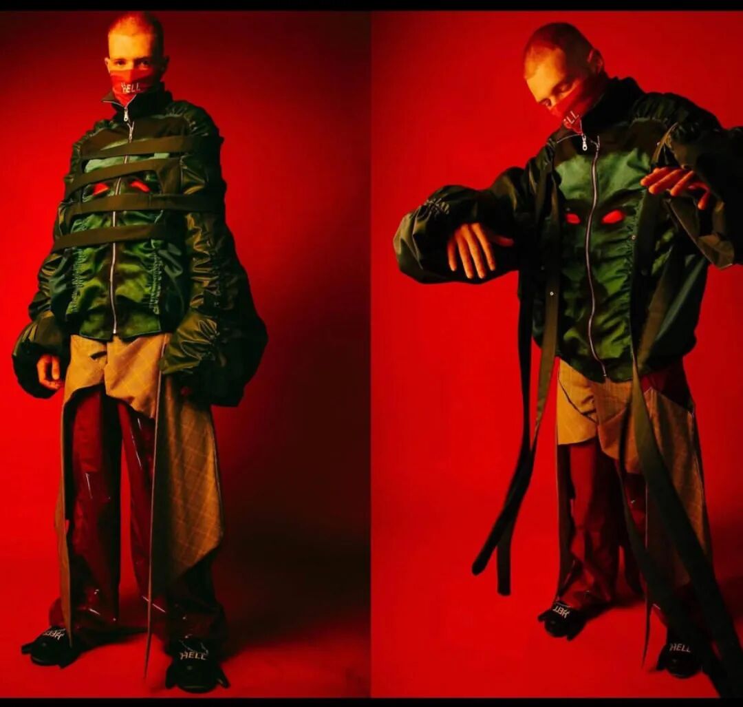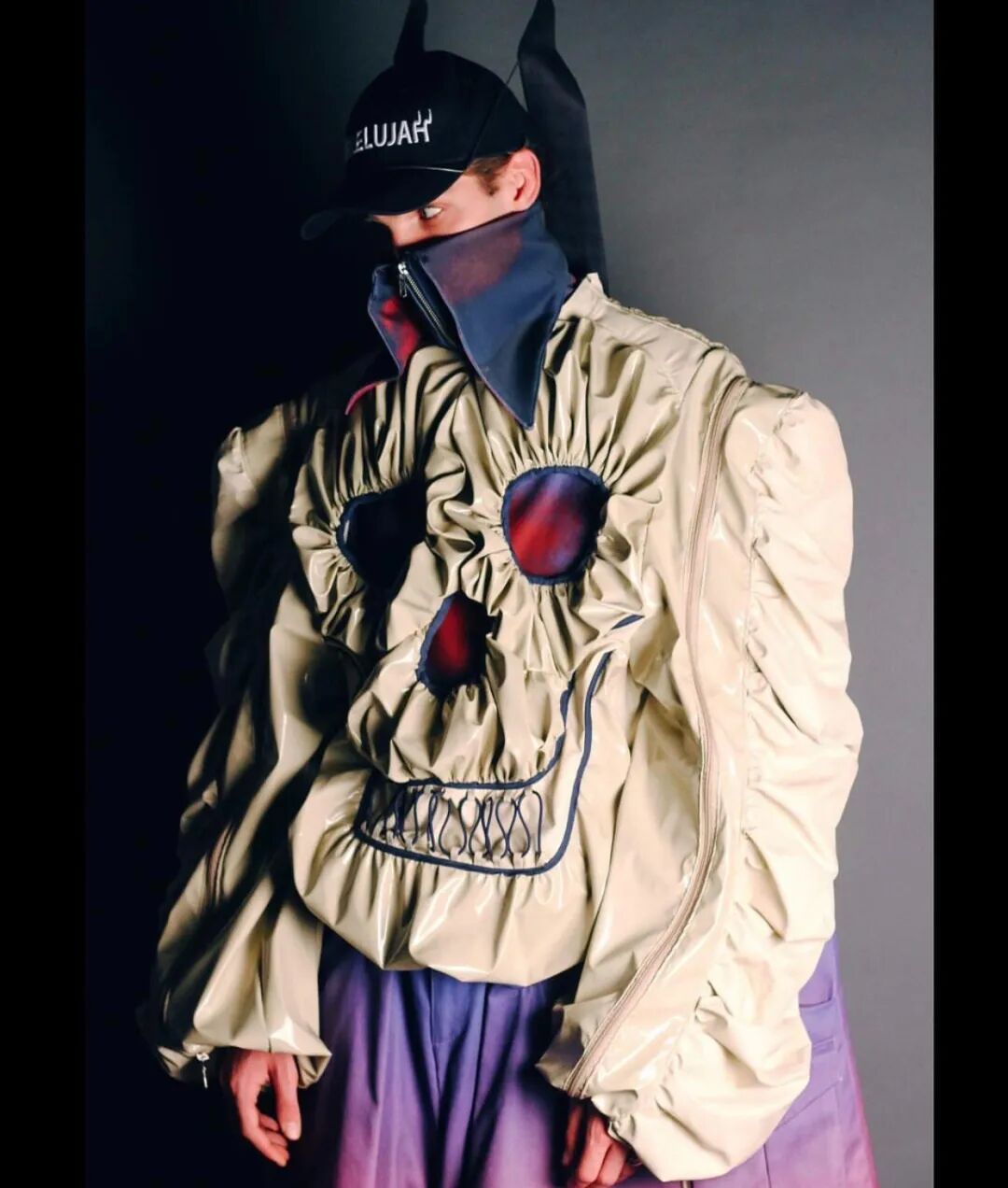 用具有破坏性的孔洞和骷髅,与朋克美学相混合,通过服装提高人们对所生活的世界的认知!