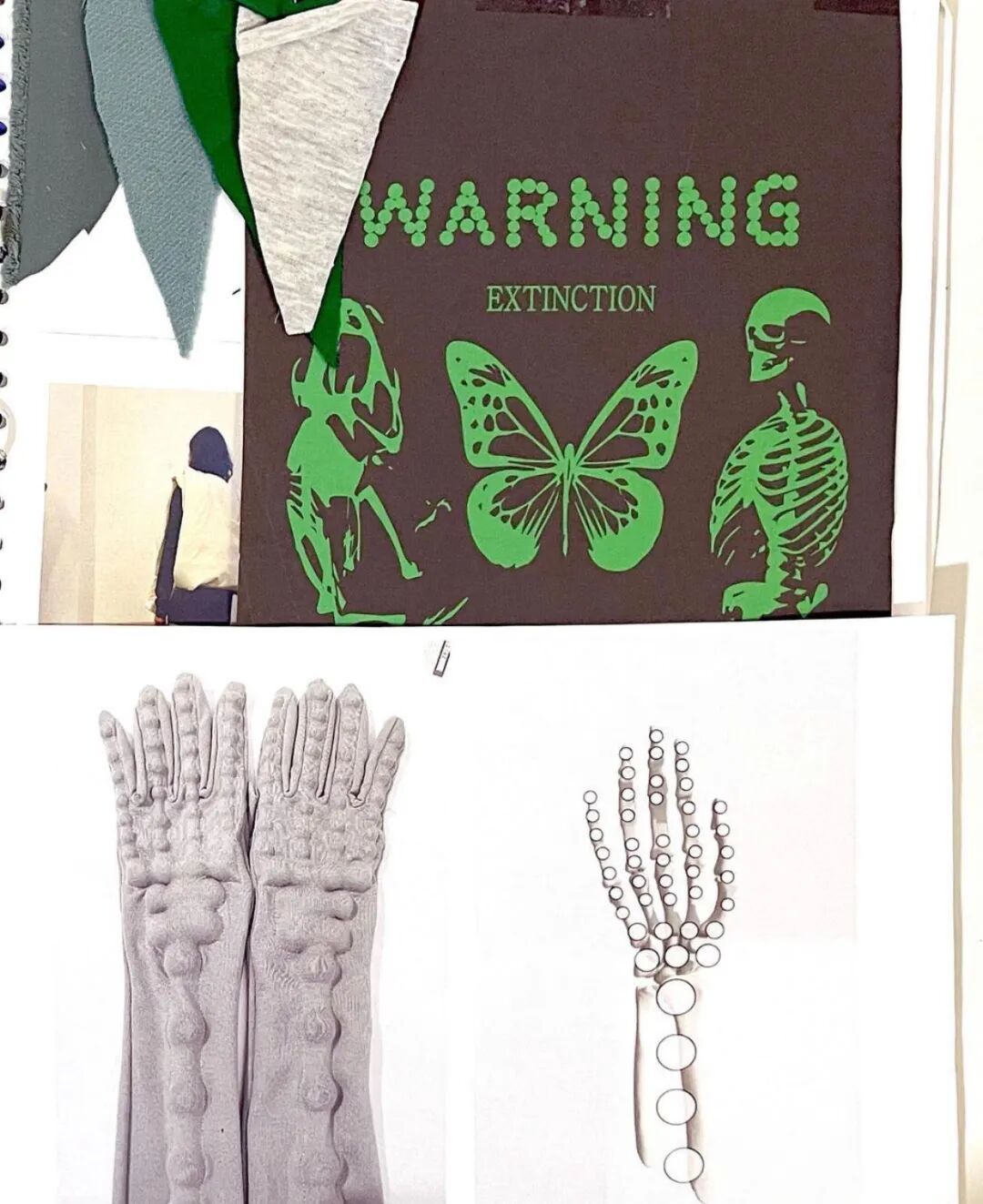 从天坑、骨骼和化石中提取元素,并将这些图像与“朋克”风格结合在一起,呈现出反应社会问题的风格化设计,同时也在警告人们全球变暖的问题。我们的大自然每天都在遭受各种灾害。