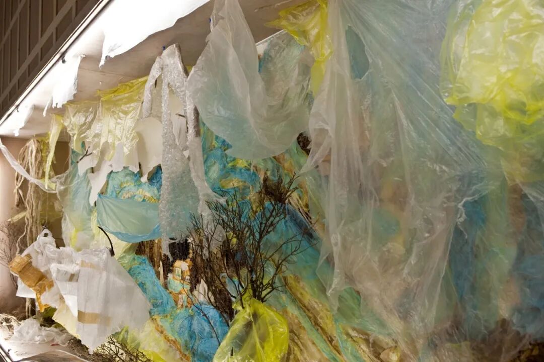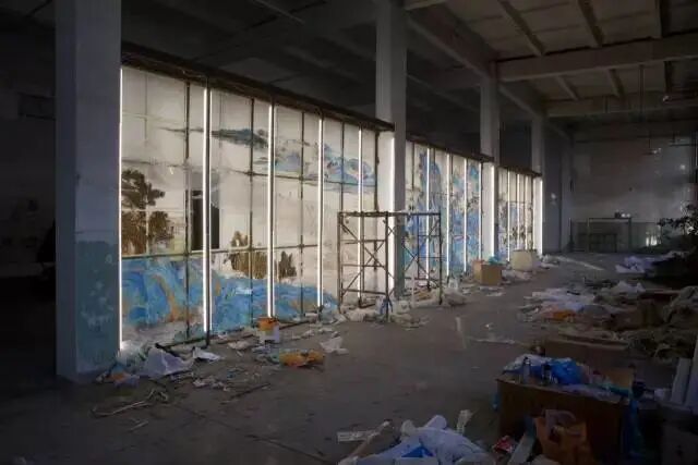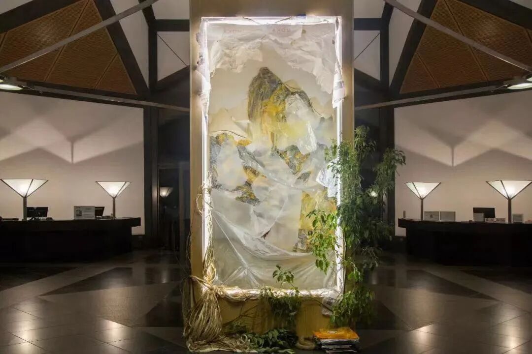 徐冰《背后的故事》系列,通常正面都是典雅的东方山水画;如果走到画作的背后,看到的却是一堆纸板、树枝等杂物。原来,这些画都是由这些生活中不起眼的材料营造而成,是徐冰用自己的独特方式对古代绘画的创造性诠释。通过背面再走进正面,不难发现阴影画作呈现的妙,光线从雾状的磨砂玻璃射出,照亮了日常生活中的丢弃物,却又能勾勒出山水意境,是一部有趣的阴影中的中国古典绘画。