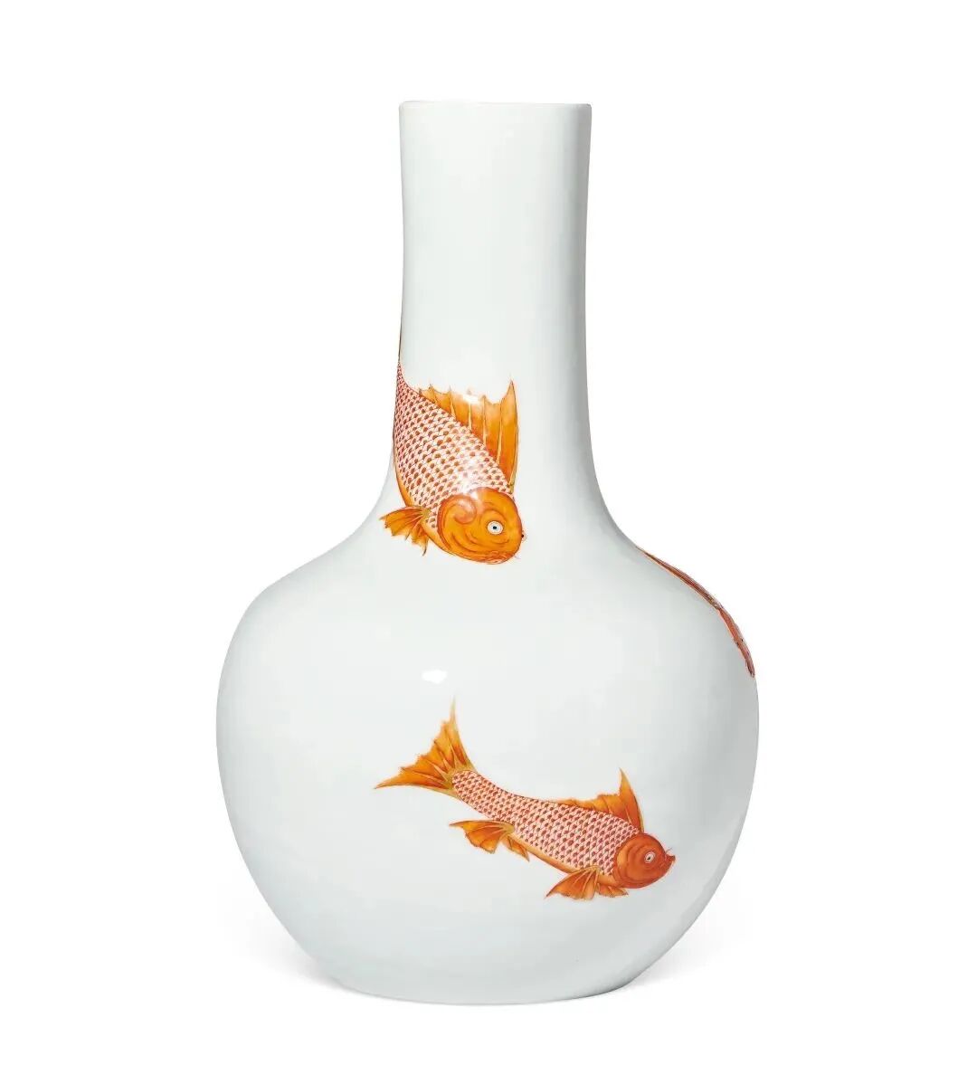 清雍正矾红描金模印金玉满堂纹天球瓶