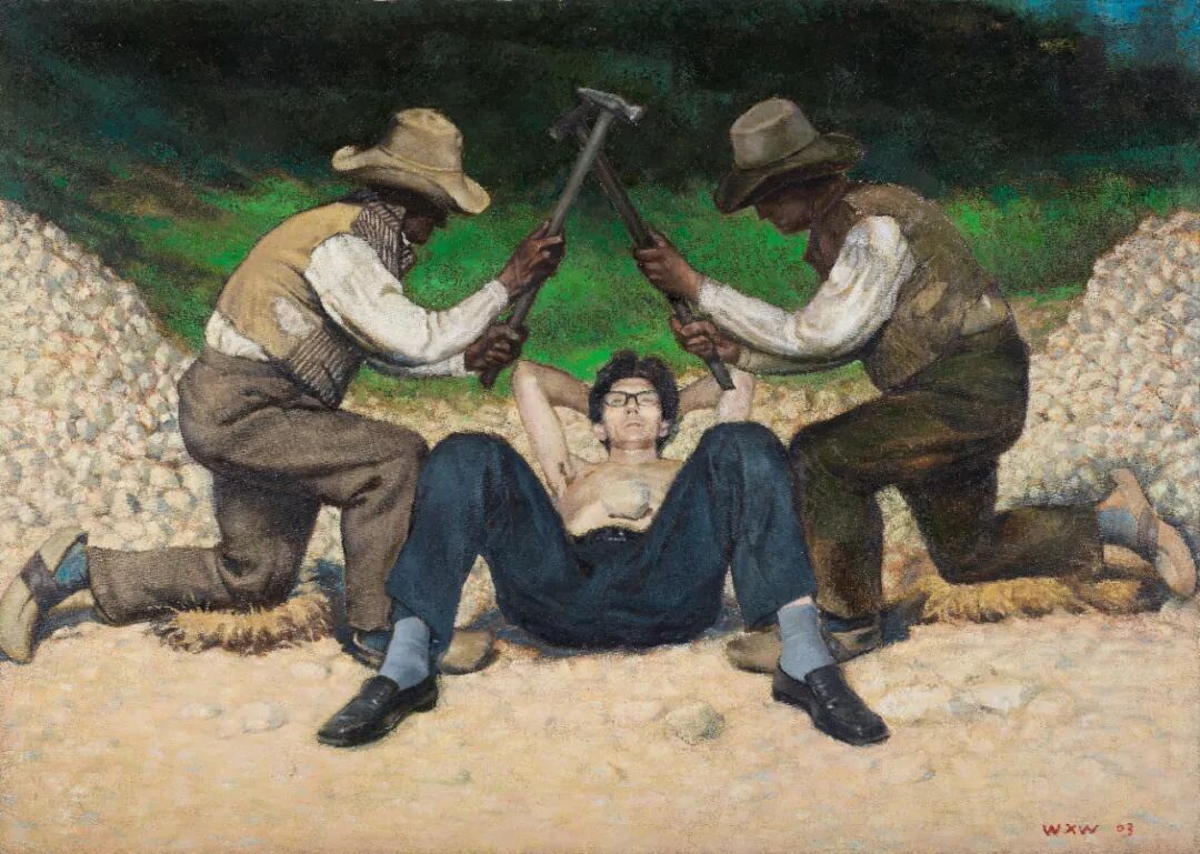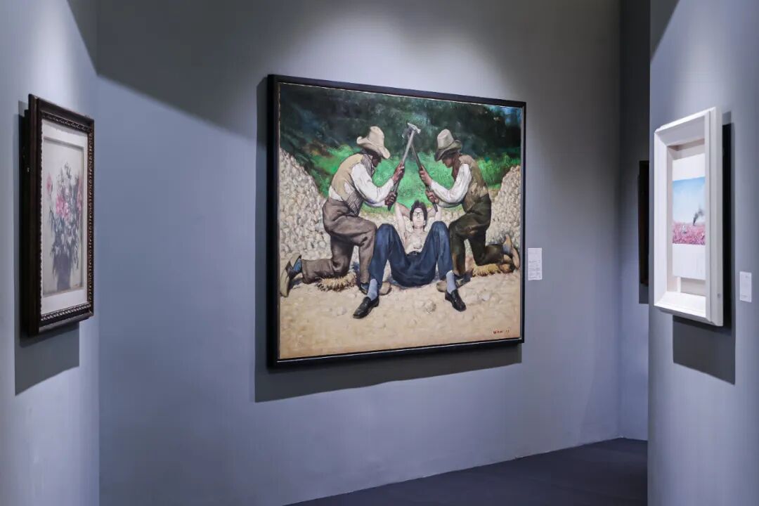 紧随其后的北京秋拍,重点拍品清单中有张晓刚的《血缘:大家庭1号》,这幅作品创作于1997年,隶属张晓刚的“血缘—大家庭”系列,此件作品既是本场的重点也是亮点。还将推出朱德群在1967年创作的一幅重要作品《无题NO.267》,这一时期他投入到完全抽象的风格创作中,是风格的转折点。王兴伟创作于2003年的《无题(打石工)》也是一件重要作品,借用库尔贝经典名作《采石工》,以替换迁移进行隐喻式地表达是他常用的手法,《无题(打石工)》的图像组合是一次“无意义的搭配”,展示了无意义的幽默感,透露出一种似是而非、言之无物的无厘头感。