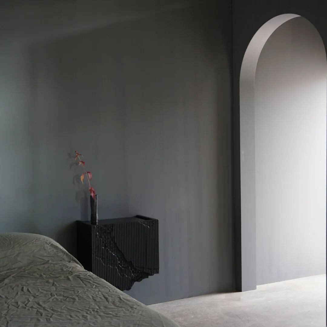 Simon Johns 的工作室就被这些山体所环绕,其灵感就来自于这个,这个系列的柜子通体为黑色,与黑色岩石造型相得益彰,使设计灵感呈现的淋漓尽致。