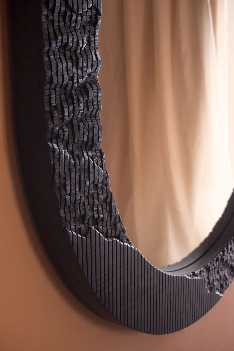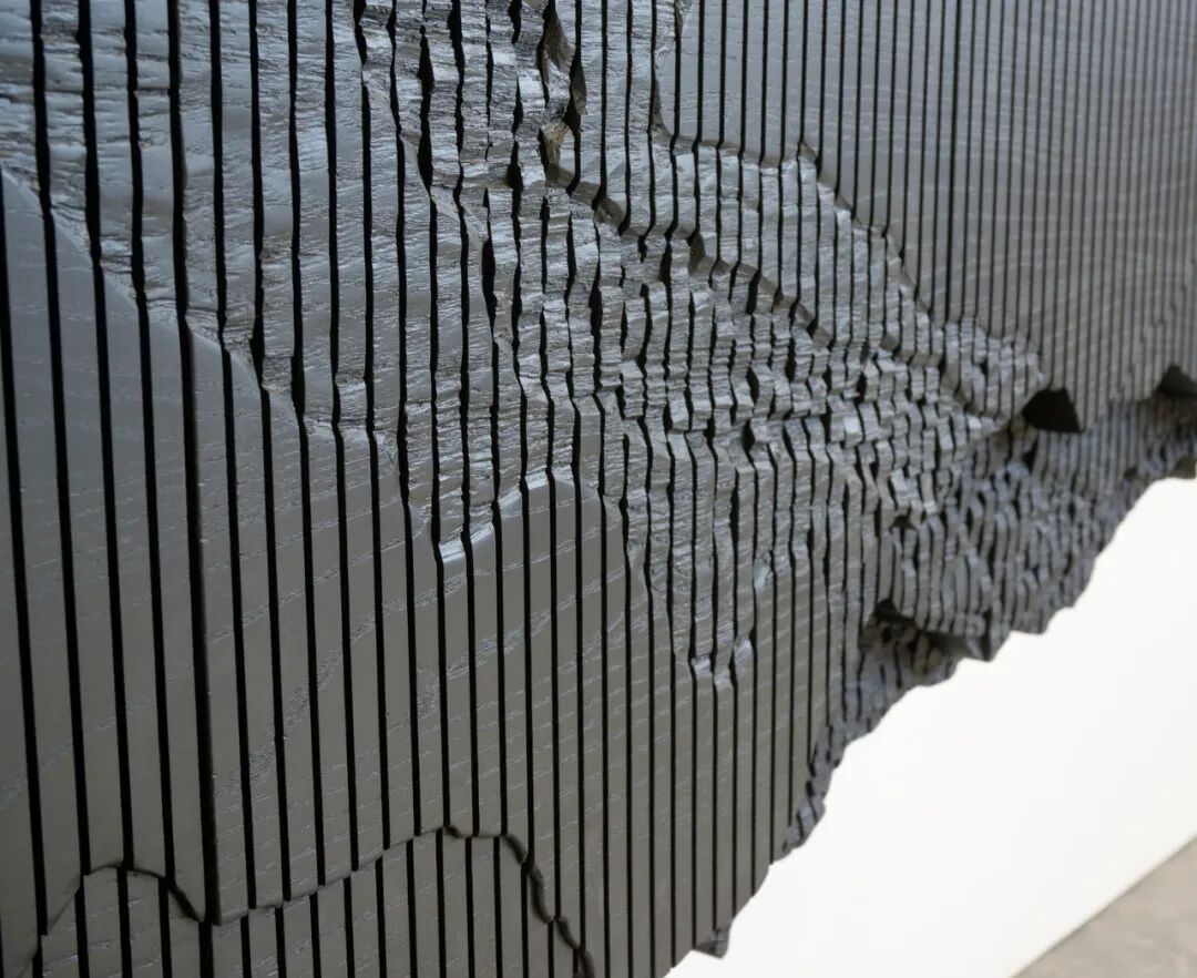 加拿大设计师 Simon Johns 的独立工作室在 WantedDesign 上推出了一系列全新的家具,它的造型如同层层叠叠的黑色石材,谁能想到,这些岩石一般的家具,竟是用木材「伪装」的呢?