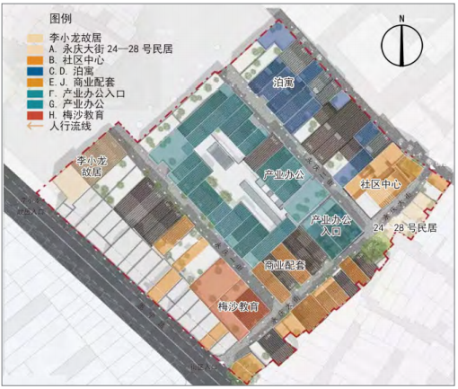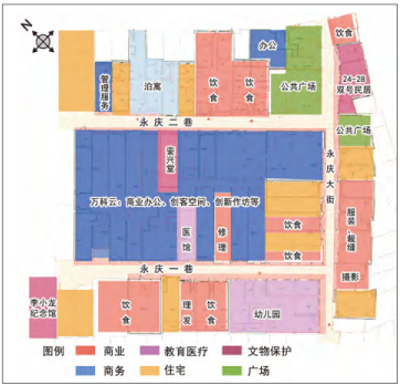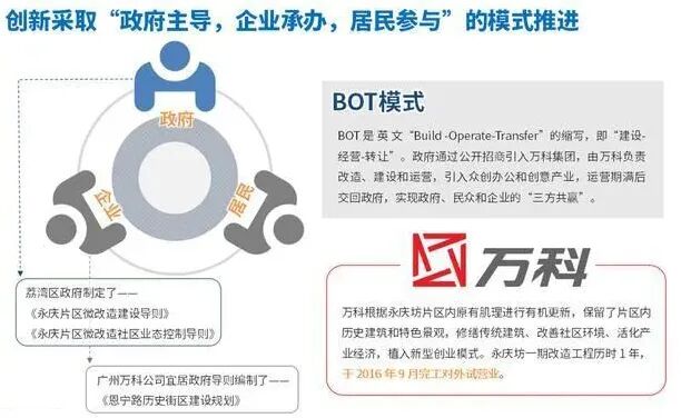 干货2024-01-14 永庆坊:历史街区城市更新样本,从网红商业街到文化新地标! 与大拆大建的改造方式不同,尊重现状的城市“微改造”,已经成为实现地方文化传承、促进地方活力与繁荣的重要手段。广州永庆坊改造,在尊重现状的基础上,通过“适应性”设计蜕变成国家4A级景区,其背后有何特别与值得借鉴的地方? 项目改造背景 永庆坊前身为永庆大街,位于有百年历史的恩宁路中段,坐落在广州老城的中心地带,自1931年建起,承载着西关老城几代人的辉煌与记忆。片区内保留了大量传统民居和文物保护单位,如李小龙祖居、詹天佑故居等,是一个典型的广州市老城历史街区。 随着城市扩张,城市中心向新城转移,西关里富贵人家的大房在岁月下渐成危房,恩宁路逐渐落败。改造前,永庆坊已是危房林立,多栋建筑“严重损坏”,有的已经倒塌,房檐下线缆如蛛网般交织,社区卫生、消防等问题堪忧,昔日兴旺的传统文化和民间手工艺也乏人问津,年轻人纷纷外流。 因此永庆坊的改造,既是城市更新,更是民生所需。自2006年起,广州市启动了恩宁路地块的旧城改造工作,改造规划历经十余年探讨,最终由“大迁大拆大建”转为“保护更新利用”,并于2016年提出了“微改造”的城市更新模式。 荔湾区政府通过BOT方式(Bulid-Operate-Transfer,即“建设-经营-转让”)引入社会资本进行“微改造”,由企业改造、建设,负责招商与运营,15年运营期满后交回政府。此阶段,政府通过公开招商引入万科集团,并确认采取“政府主导,企业承办,居民参与”的创新模式。 项目改造模式 政府主导。在初期“大拆大建”和“减量规划”阶段,政府已经完成了对永庆片区房屋的征收和拆迁工作,除了12户居民以外,政府拥有了永庆片区辖内所有房屋和土地的所有权。在永庆坊“微改造”模式中,政府建立起以“引入社会资本”、“搭建协商平台”和“保障公共利益”等内容为主的主导机制。 企业承办。根据政府与企业签订的BOT协议,万科在“微改造”建设结束之后将享有15年的运营期。在此间,万科物业统一管理永庆坊服务中心,享有入驻企业的招商、管理入驻企业、活动策划等权限。 居民参与。居民可以通过多种途径参与地区更新:第一种是在遵循相关规划要求的前提下,居民自行改造住屋;第二种是居民可将物业出租给开发商运营,或自行出租获得收益;第三种是由政府征收,居民获得资金与置换居住空间。 项目改造策略及特色 永庆坊微改造都保留了区域内原有的肌理,一期保留了“一纵两横”街区格局,而二期则保留了“三横五纵”的传统格局。在建筑改造上,对传统建筑进行“绣花式”小规模拆建与修补。 1.街巷修整 保留肌理,着重修补。在保留原有风貌的基础上,对原来恶劣的环境进行现代化修整,路面重新铺设,房檐下交织的线缆全部埋入地下,社区卫生、排水、照明、消防、通信等配套设施也大为改善。 为保留麻石路的初始面貌,同时兼顾下水道排污,施工人员把麻石整块挖开,重新铺设管道后再恢复原貌。为提升整体形象,永庆坊周边的恩宁路、宝源路、丛桂路、龙津西路、多宝路、蓬莱路等道路沿线,都被重新铺设了深灰色的人行道花岗石、盲道及路缘石,原汁原味地保留着岭南特色风貌。 此外,设计团队还利用场地的废料,如瓦片、青砖、麻石以及木材,将它们变为景观元素。同时利用传统的建筑施工方法传达出一种古老的氛围,让人们走进永庆坊依然能感受到曾经的过往。 在公共空间营造上,以荔枝湾为景观,永庆坊恢复了水秀花香的历史风貌,还原了岭南小桥流水人家的市井雅趣。项目将历史风貌、公共空间、人游动线、自然水系和消防安全兼顾考虑,结合景观设计整体设计,形成了宜人的内街小巷和外部公共空间。这些公共空间不仅是游人游乐的场所,也是周边居民散步闲坐的好去处。 ▲ 荔枝湾 2.建筑修葺 万科将片区内的68栋建筑逐一编号,评估并分类其破损程度,为每栋建筑量身定做微改造方案。 对建筑内部进行重新翻修,固化结构,引入全新配套设施,有选择性地进行“留”与“拆”的改造,如李小龙祖居对腐朽、残损的木构架落架重修,对加建、复建等破坏传统风貌的部分清理整治。办公空间则在不改变建筑外部形态的基础上,打通内部墙体,使用玻璃结构间隔,打造宽敞明亮的效果。 ▲ 改造前后对比 大部分建筑保留了原有的立面样式,对部分建筑在色彩、采光、防护等方面进行了修缮,旨在强化岭南建筑整体风貌特色,保留岭南传统民居的空间肌理特点。 除了部分重点文物保护单位保留原配色,大部分建筑外立面被替换成灰色调的砖块,个别建筑则采用白色金属框立面和外墙进行装饰。同时,为满足商业建筑的室内采光需求,部分商业建筑添置了新型的外凸窗,部分建筑增设了阳台围栏,并铺设了瓦片。 3.业态选择 永庆坊改造伊始,就考虑街区对新业态的承载功能,通过导入新业态,注入产业造血功能,让老城区逐渐焕发新活力。 ▲ 改造后总平面图 ▲ 改造后功能分区图 从引入商业活力的业态划分上,永庆坊项目将整体分成了“粤韵西区”及“风尚东区”。西区以文创特色、非遗传承、国粹文化、老字号为主要内容,顾客可在其中感受传统文化的新生魅力;东区则偏重国潮时尚、夜生活酒吧街、先锋文化体验,感受新活力带来的冲击与碰撞。 ▲改造后业态布局图 已开业