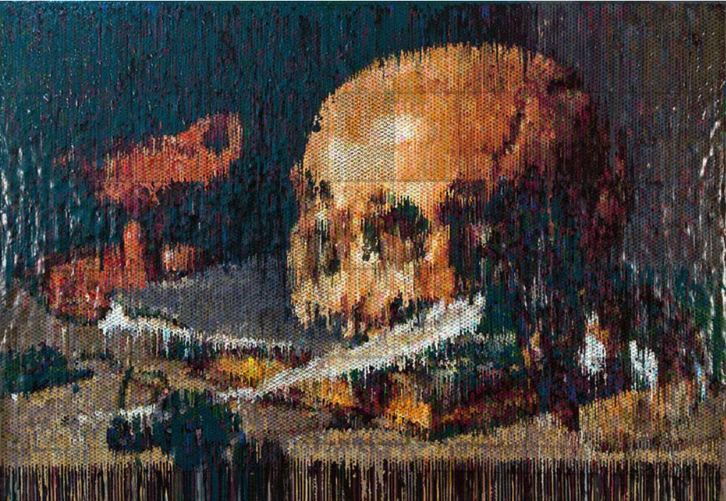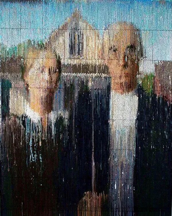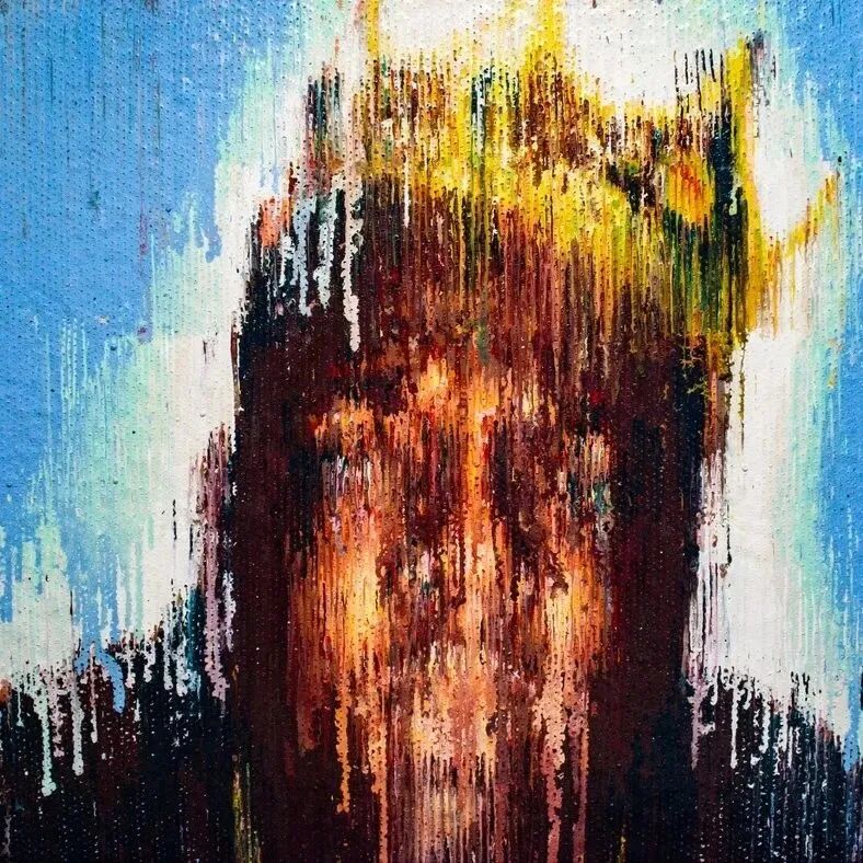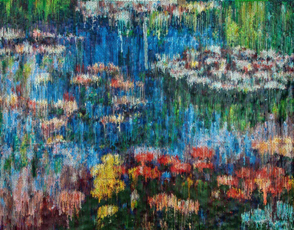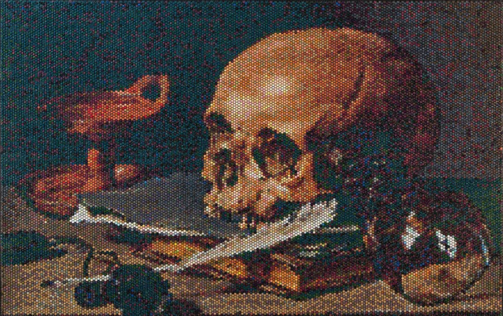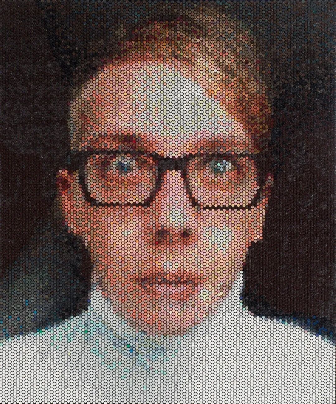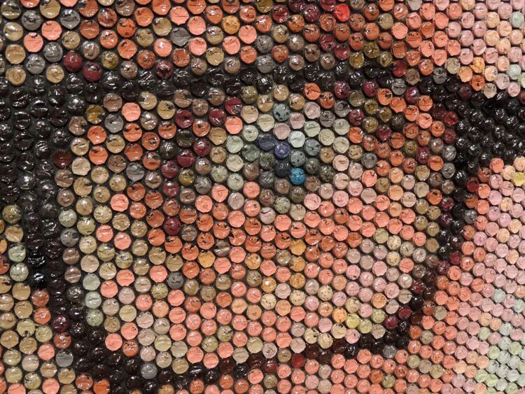 BradleyHart在每个气泡膜中注入不同颜料,让每个泡泡都填充了饱满的色彩,构成“像素化”画面。多余的颜料会滴落到作品的背面,再把支撑颜料不外流的泡沫纸撕下,颜料从泡泡里溢出流动,露出作品的印记,组成了另一种抽象的风格。所以他的每幅作品其实都有两个版本,从正面看是“像素派”,但后面确实意想不到的“抽象派”。