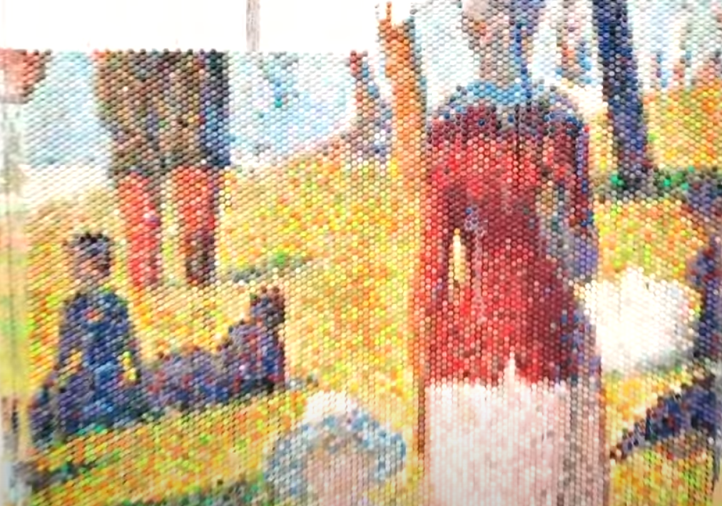 他说:“围绕我们的科技世界,都是由一点点逐渐构成的,当我制作这些作品时,一点一点地注入颜色,就像是把一个个的像素连接成一个连贯的画面。当作品呈现的时候,就像是把虚拟世界与现实世界连接在一起,成为能够触摸的艺术。”