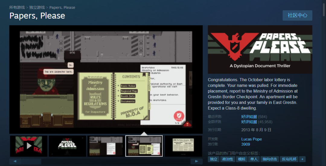 所以关于电影的题材,VRChat 中的技术宅们更加钟爱于一些经典游戏或者独立小众的佳作,比如《Papers please (请出示文件)》。