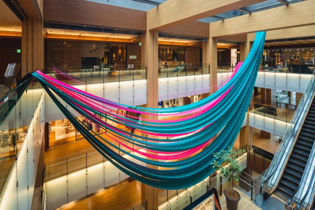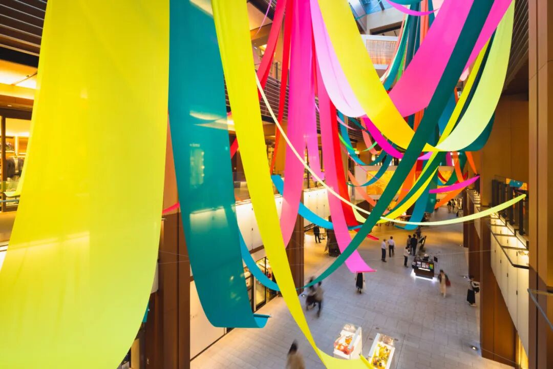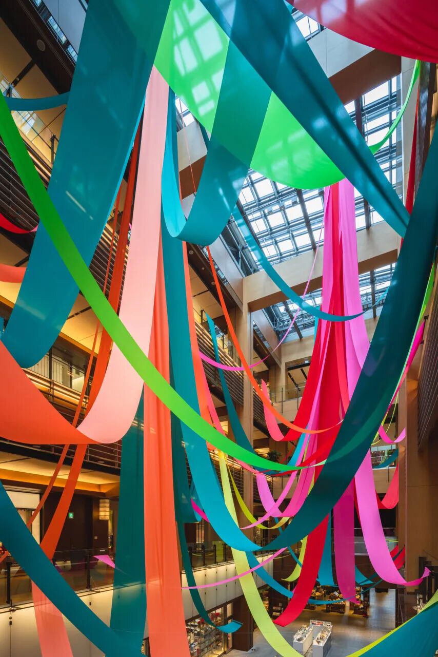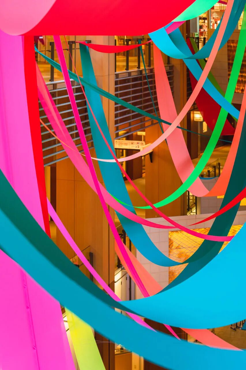 SPREAD 为东京中城打造的大型装置——色彩丛林,用以迎接2021年圣诞节的到来,作品横跨三个中庭,面积近8万立方米,通过色彩为人们传递节日的喜悦气氛。
