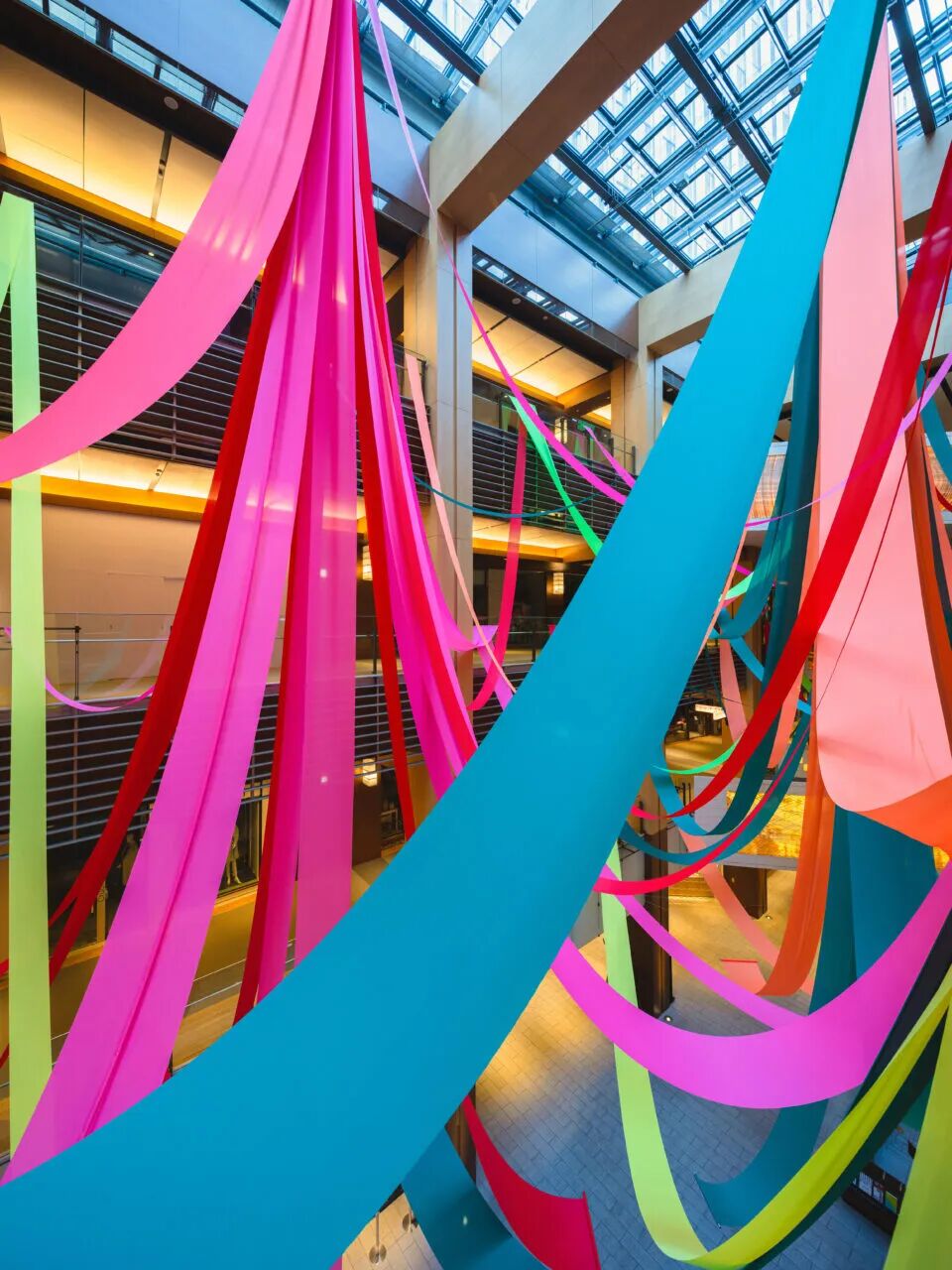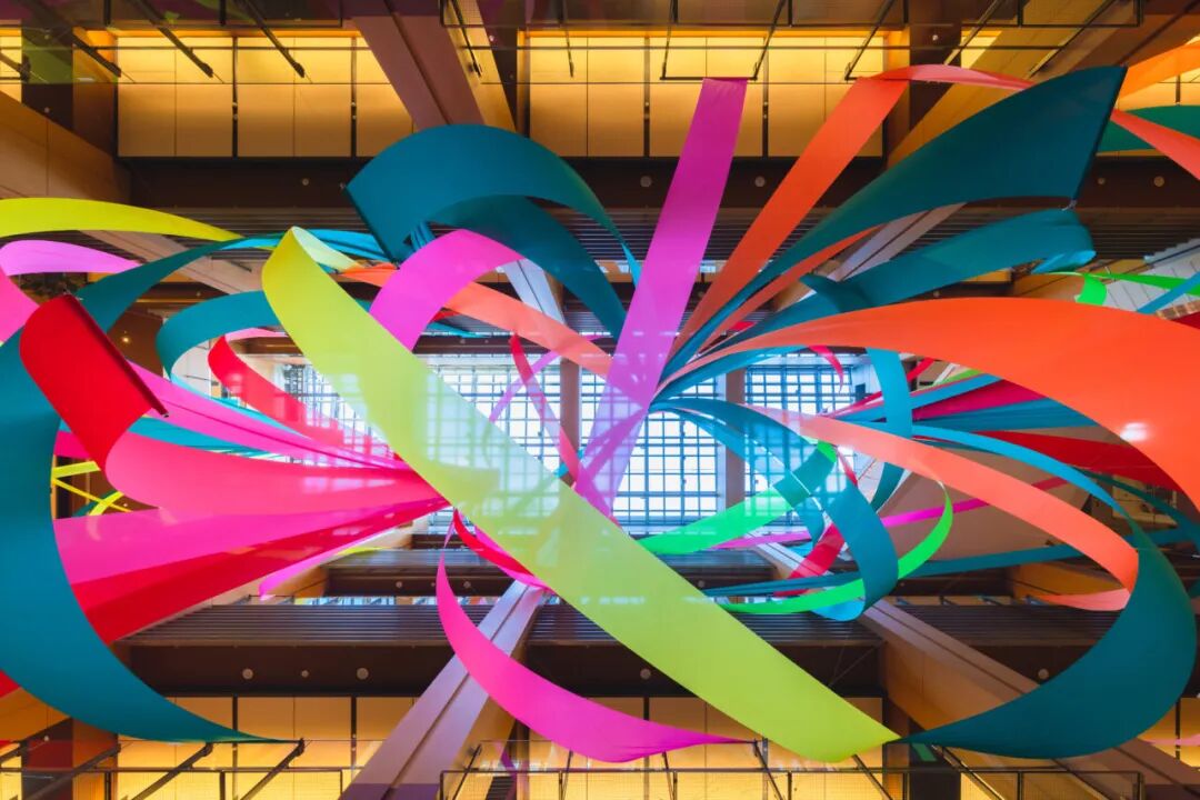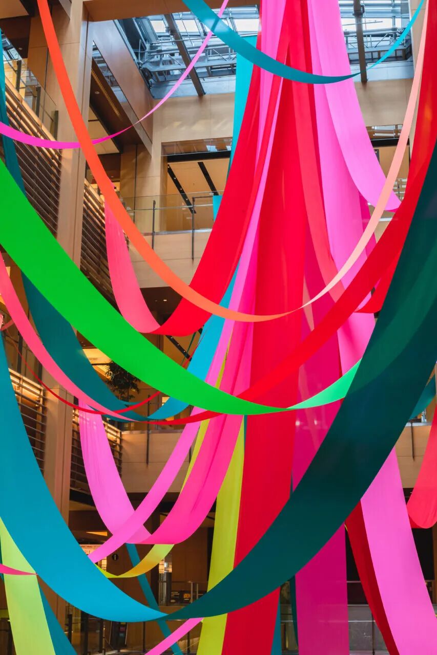 SPREAD 为东京中城打造的大型装置——色彩丛林,用以迎接2021年圣诞节的到来,作品横跨三个中庭,面积近8万立方米,通过色彩为人们传递节日的喜悦气氛。