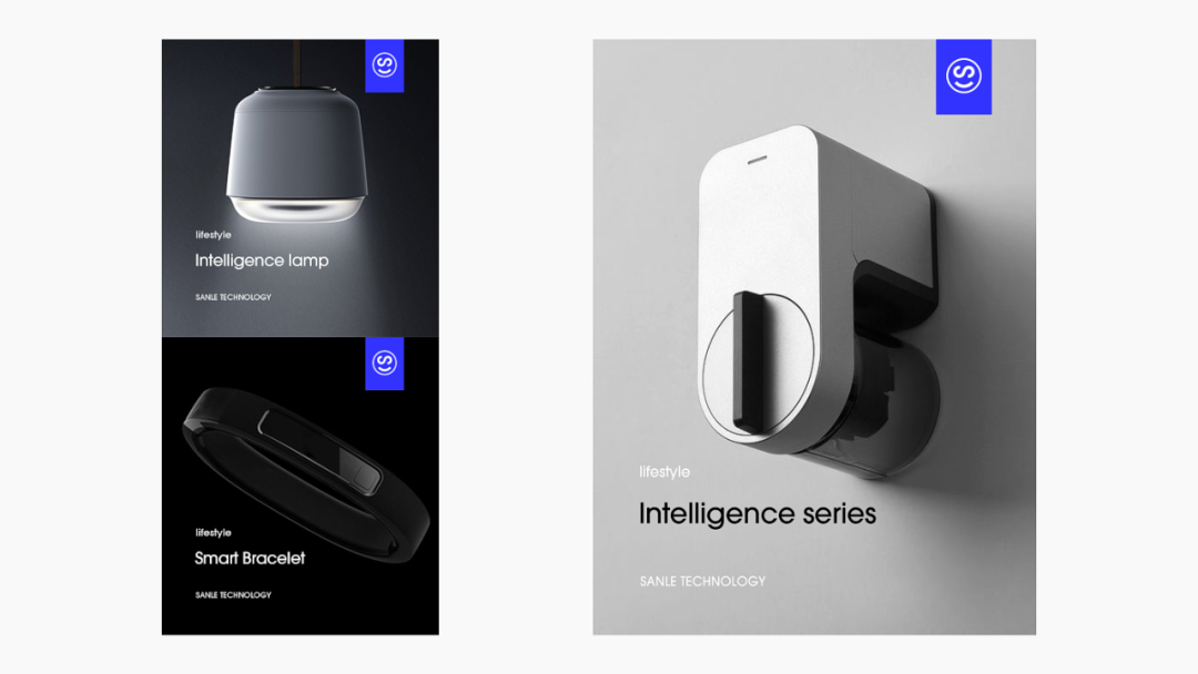 Sanle是一家主要做生活类科技电器的公司。科技给人们的生活带来便捷及快乐是sanle的核心。标志图形是一个极简,规整,有趣,亲和且富有生活气息的符号,同时兼具现代,智能的感受;旋转了90度的S设计是一个无限的符号,代表着未来科技的无限可能性,不同于字母s的地方在于它是对称的,同时在两个圆弧的连接处及尾部做了有机的设计处理,去除了几何构图的呆木及不自然感,给标志增加了一些生命的温度,结合下方代表着幸福笑脸的弧线来对应sanle的企业理念,科技与生活。