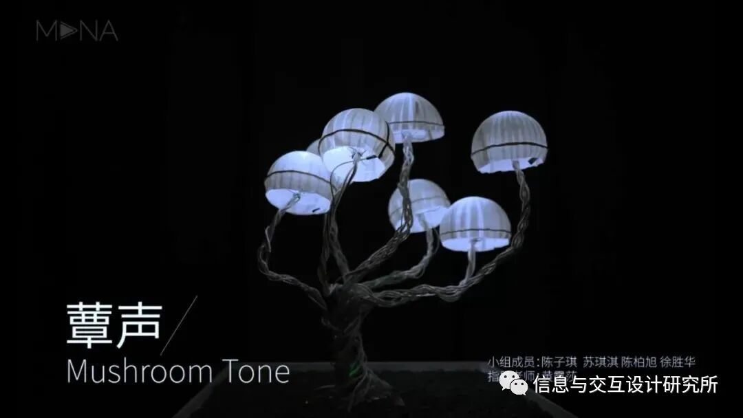 后疫情时代,闭封的生活状态使人们难以接触自然。希望通过互动装置,为人们带来片刻的喘息和与生物的联结。作品基于arduino编程基础的互动装置。当观众接近装置,蘑菇灯光会分组随机亮起;观众通过触碰纸艺蘑菇顶部的导电材料,蘑菇就会发出不同的音调的钢琴声响,依次找到do re mi fa sol la si的音乐基础七个音符后,即可即兴弹奏出一段音乐。
