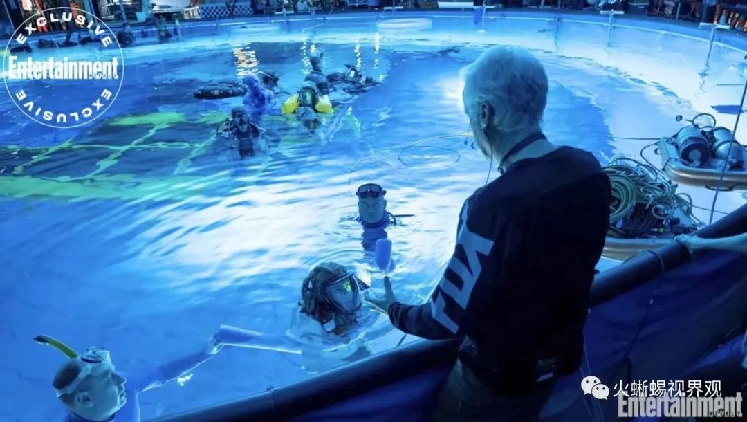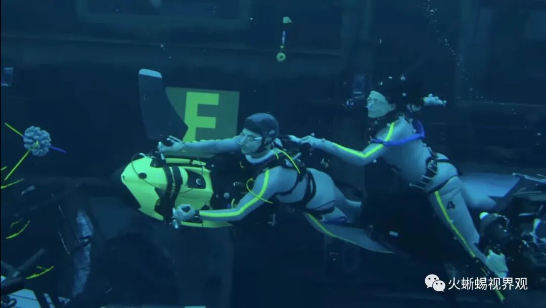 我们知道任何水下拍摄都非常困难,因为水会使颜色迅速下降。蓝光波长在水下传播最好,但通常情况下,水下摄影必须处理红光波长,每离开镜头两米就有一个光阑。水下拍摄动作捕捉更为复杂。而卡梅隆是一位水下摄影的探索大师,在1989年的作品《深渊》拍摄过程中,他甚至在马里亚纳海沟最深处进行了一次真实的体验之旅。对于空间的创造,小蜥蜴非常沉迷于卡梅隆自己的一个说法: