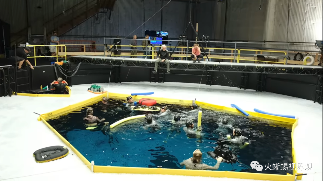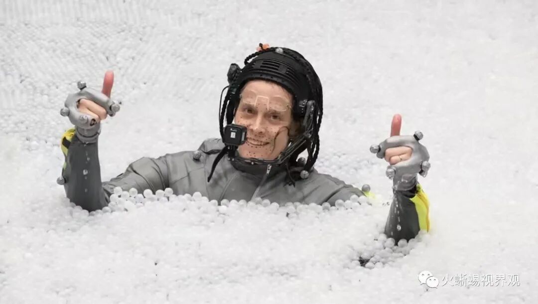 水的问题不在于水下部分,而在于空气和水之间的界面,它形成了一面移动的镜子,移动的镜子反射了所有的点和标记,它创造了一堆错误的标记。这有点像战斗机扔了一堆箔条来迷惑导弹的雷达系统。所以,卡梅隆和他的团队必须想办法解决这个问题。基本上,每当你往任何问题中加水,问题就会变得困难十倍。所以,他们在这个问题上投入了大量的精力、创新、想象力和新技术。解决方案的一部分是用白色小球覆盖水箱表面,防止头顶的工作室灯光污染下面的性能捕捉系统,同时允许下面的任何人在需要时通过小球安全浮出水面。