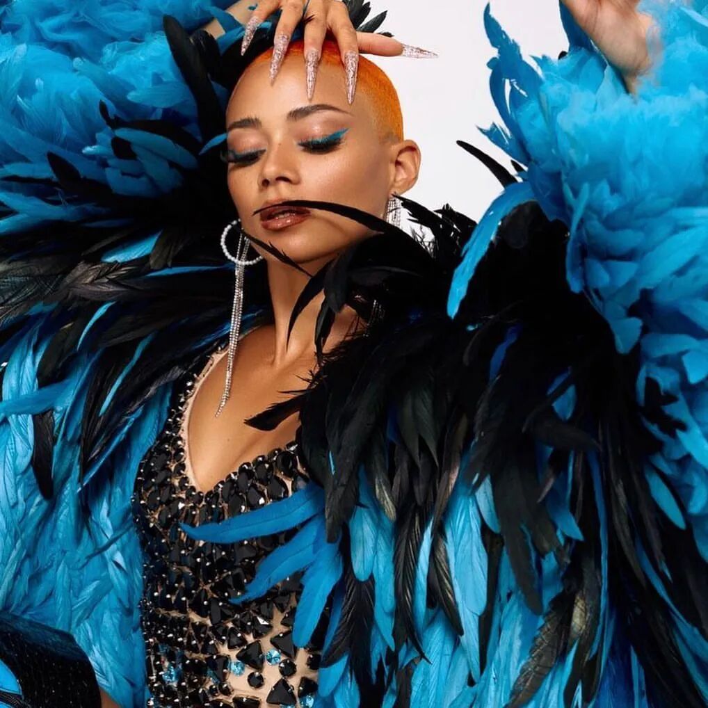 2022SS高定系列,从超级英雄 Superheroes中汲取灵感,模特们戴着梦幻般的面具和身着闪亮的服装。空灵、透明,绣有轻盈闪亮的珠宝,以万花筒般的印花、羽毛和纱为主。表达作者梦幻般的英雄赞歌。