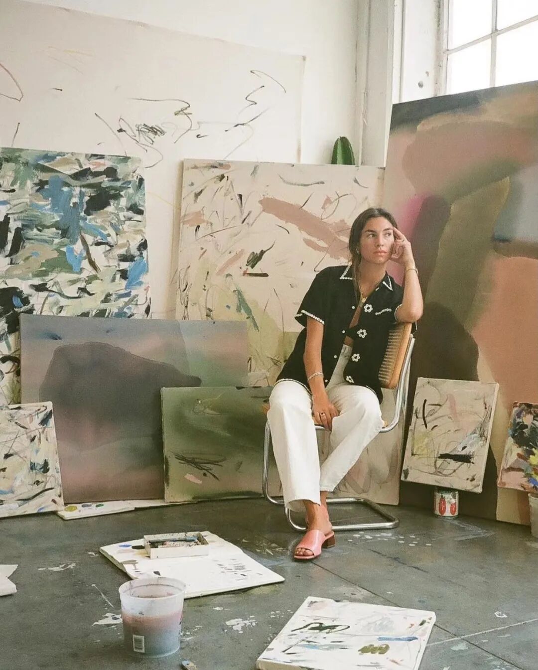 她喜欢用不断发展的调色盘和方法,突破色彩和技术的限制,她毫不费力地用颜料应用创造了能量和自发性的视觉表现,她作品抽象的表达让画布充满活力。