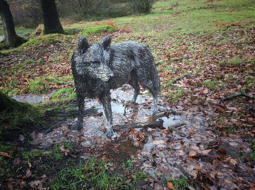 铁丝被萨拉·巴恩斯一束束收集和装订起来,类似用钢笔或铅笔绘制的粗体素描排线,然后将它们捆绑成超逼真的动物雕塑,虽然整个作品完全是用铁丝制作而成,但是我们可以看到非常多的细节,包括动物的骨骼结构、神态和运动轨迹。