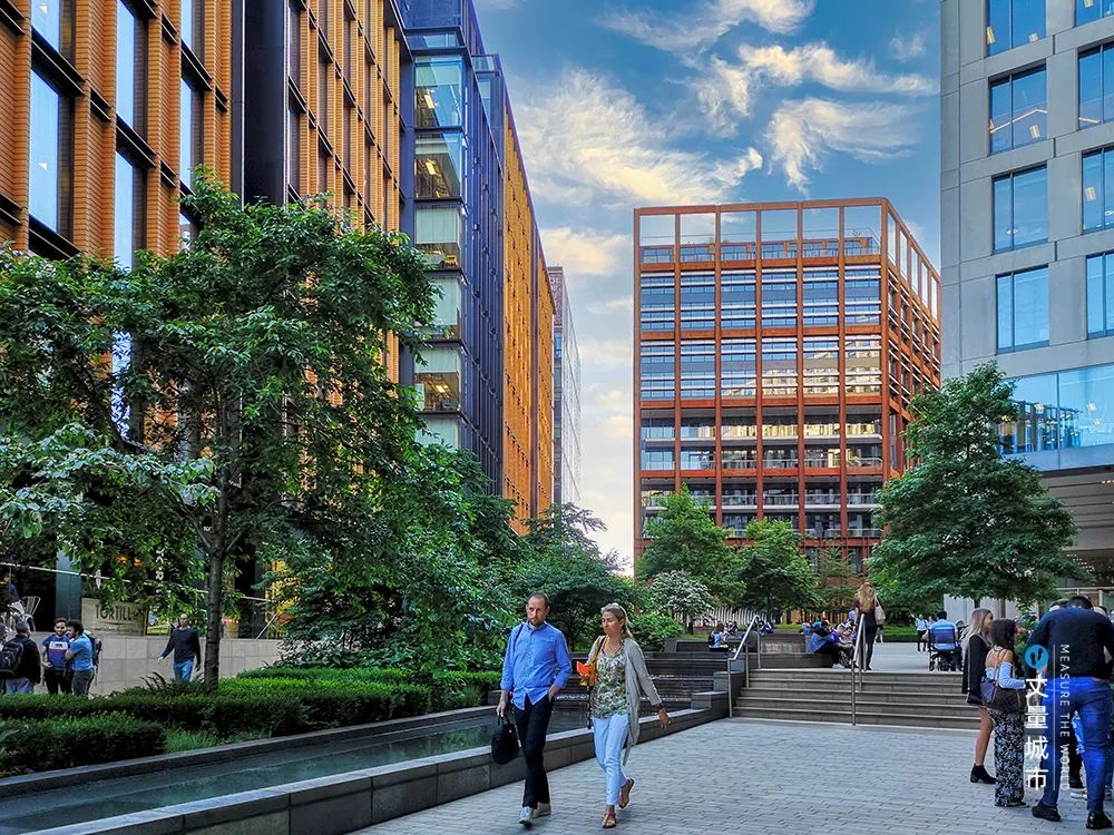 规划师在街区中规划了商务办公、旅游、居住、教育、休闲等多项功能,成为体现多元伦敦各个切面的高密度片区:既是国际化商务办公区,也是拥有浓郁艺术、文化氛围的文化教育区;既提供舒适的城市生活,也拥有时尚、现代、科技的商业消费功能。