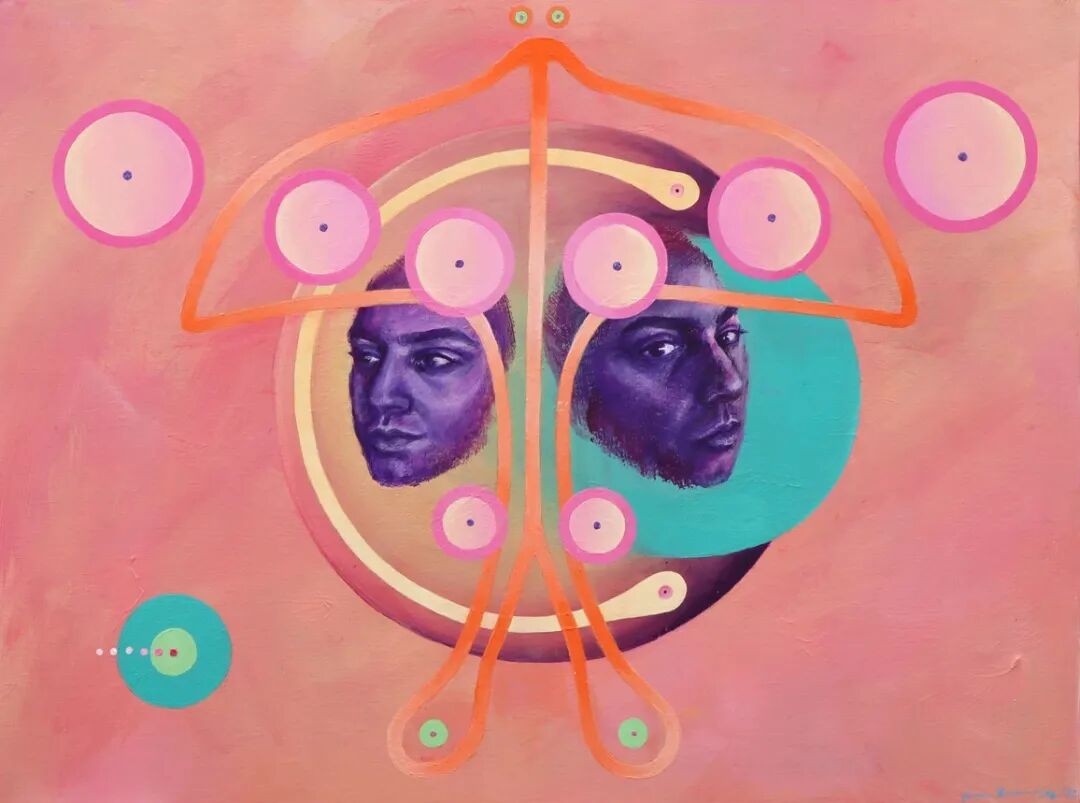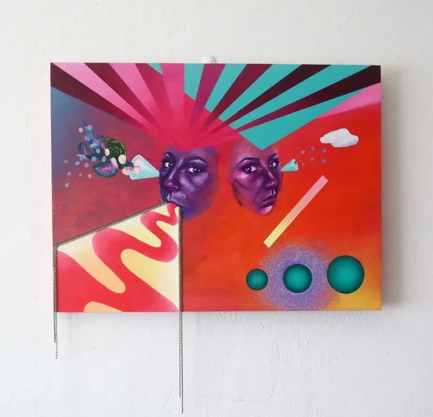 她说:“这种方法是为了扰乱男性的凝视,让我的身体重新成为一种制造工具。绘画的主题也与古怪的表演元素形成鲜明对比。用鲜艳的色彩和梦幻般的视觉形象,我表达了悲伤、困难和自我的对抗。”