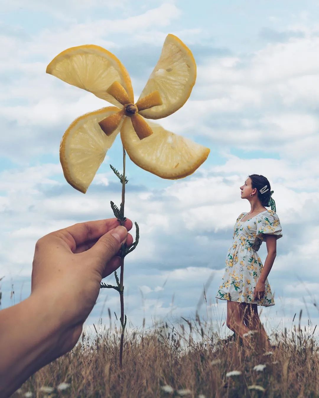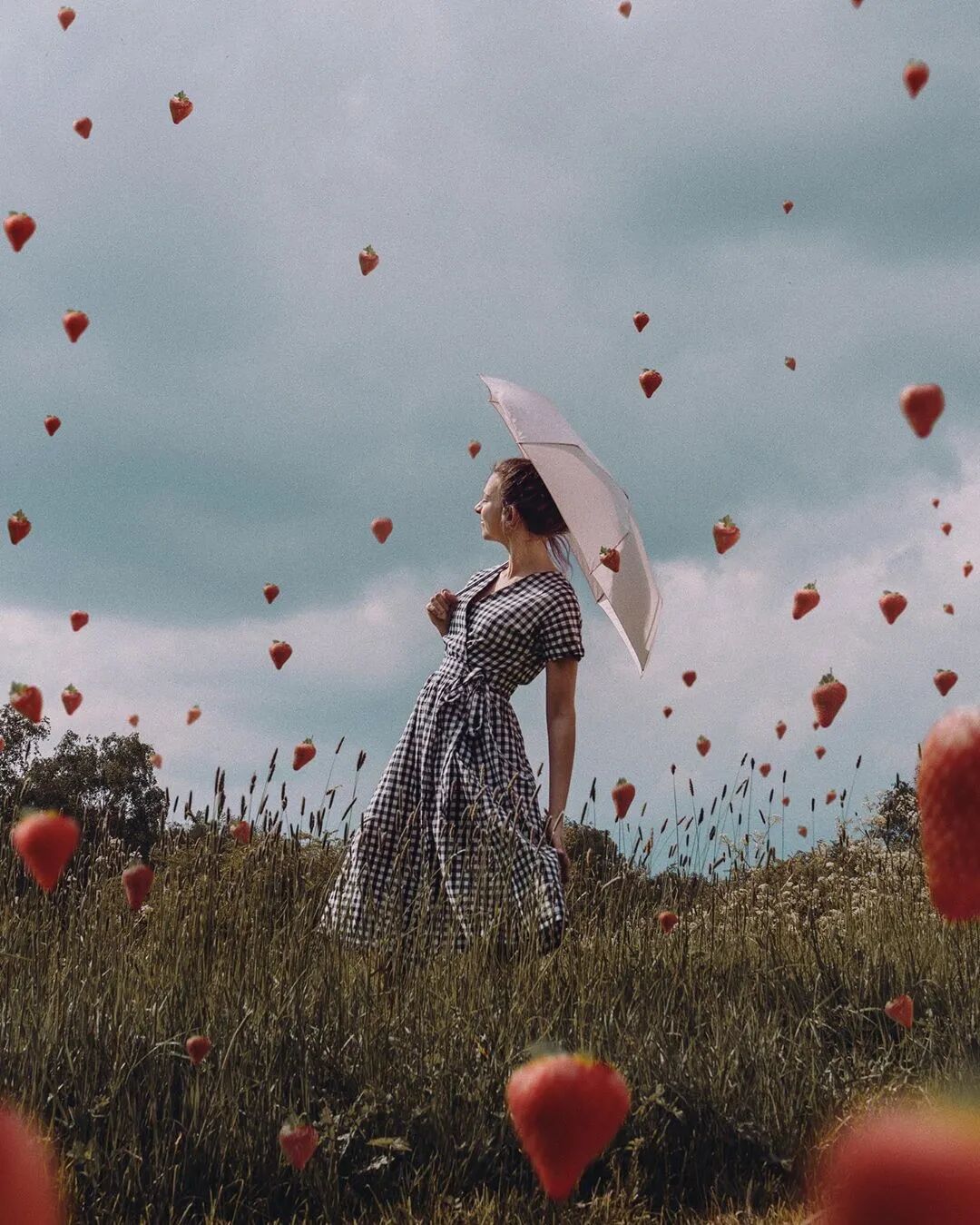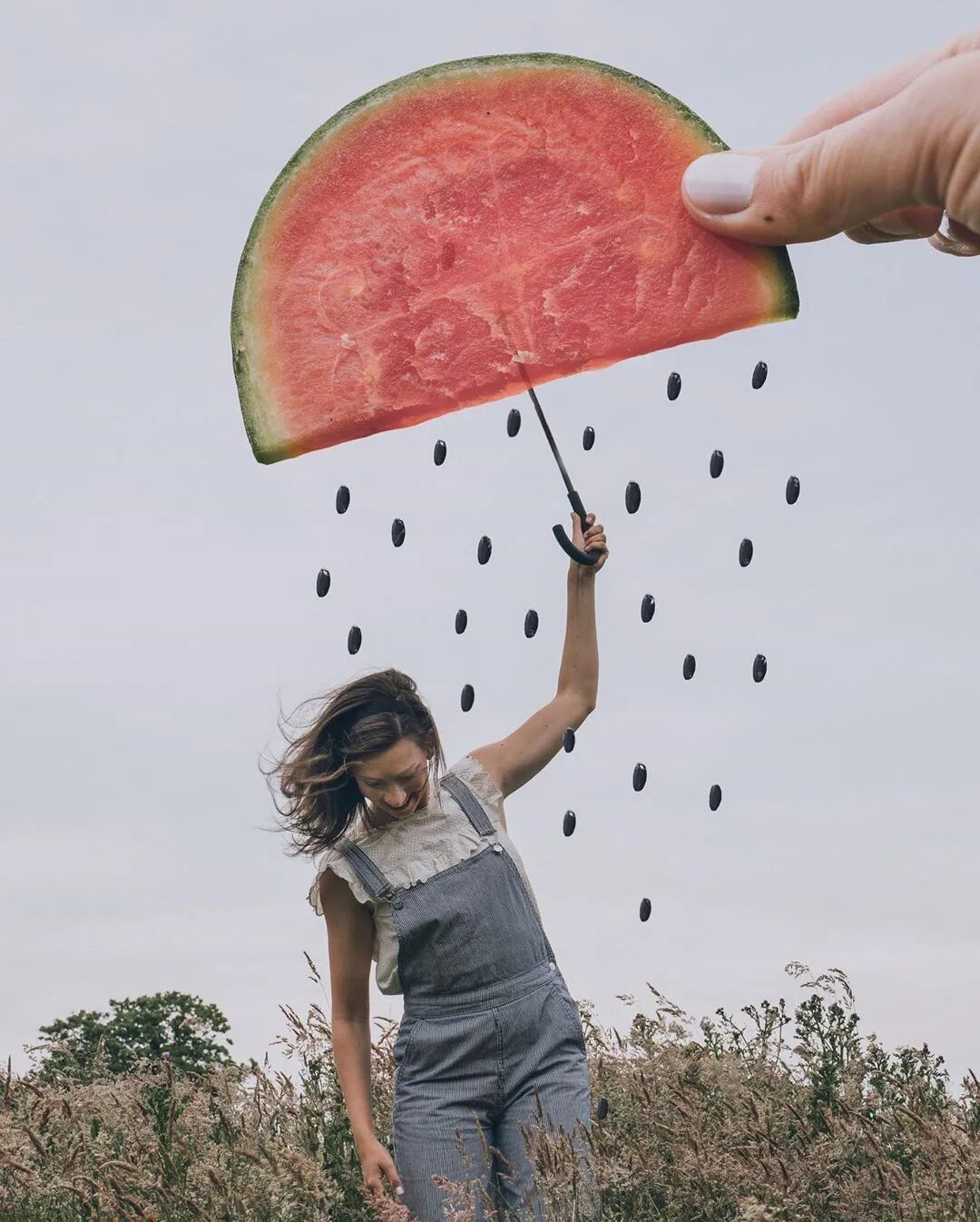 摄影师 Kutova KiKa 用鲜花、果蔬、贝壳这些日常的拍摄道具,拍出创意又有趣的作品。