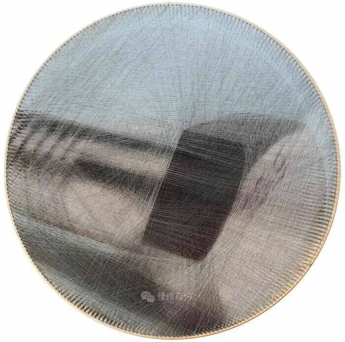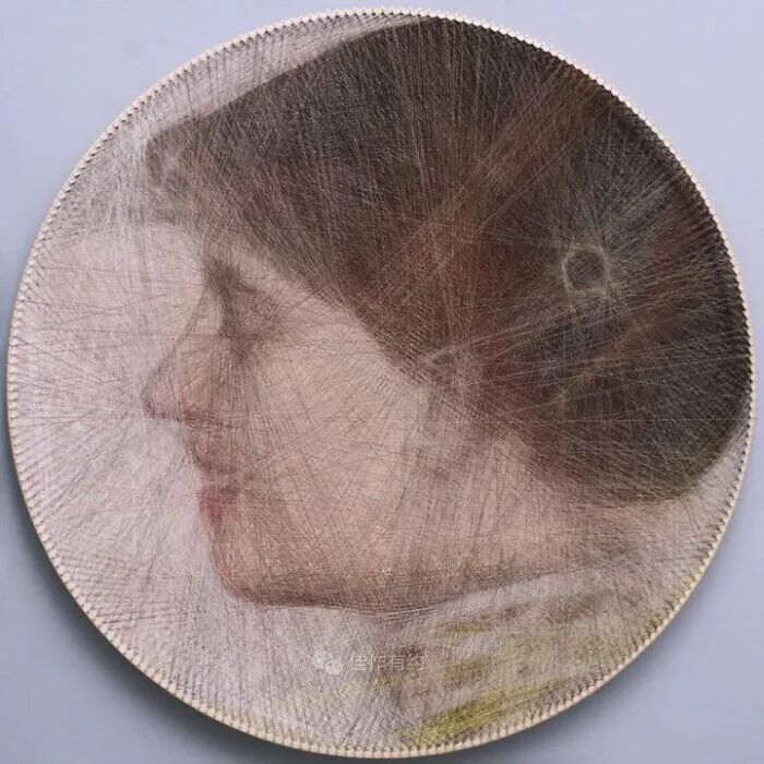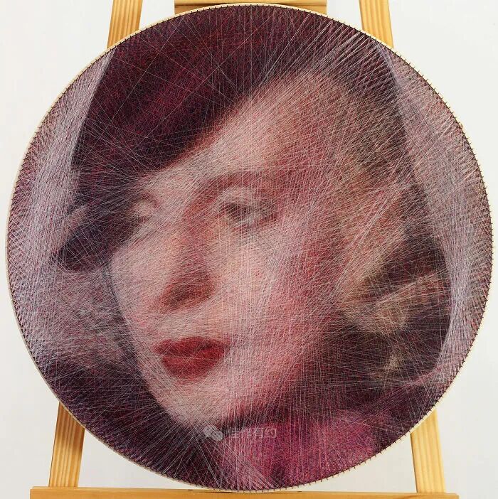 11300 连接5,1 公里/3.2 英里16 种类型/颜色的线这件艺术品的灵感来自伟大的波兰装饰艺术画家 Tamara Łempicka 和她的一幅画作“La Sagese”,1940-41 .胶合板,直径 60 厘米/23.5 英寸