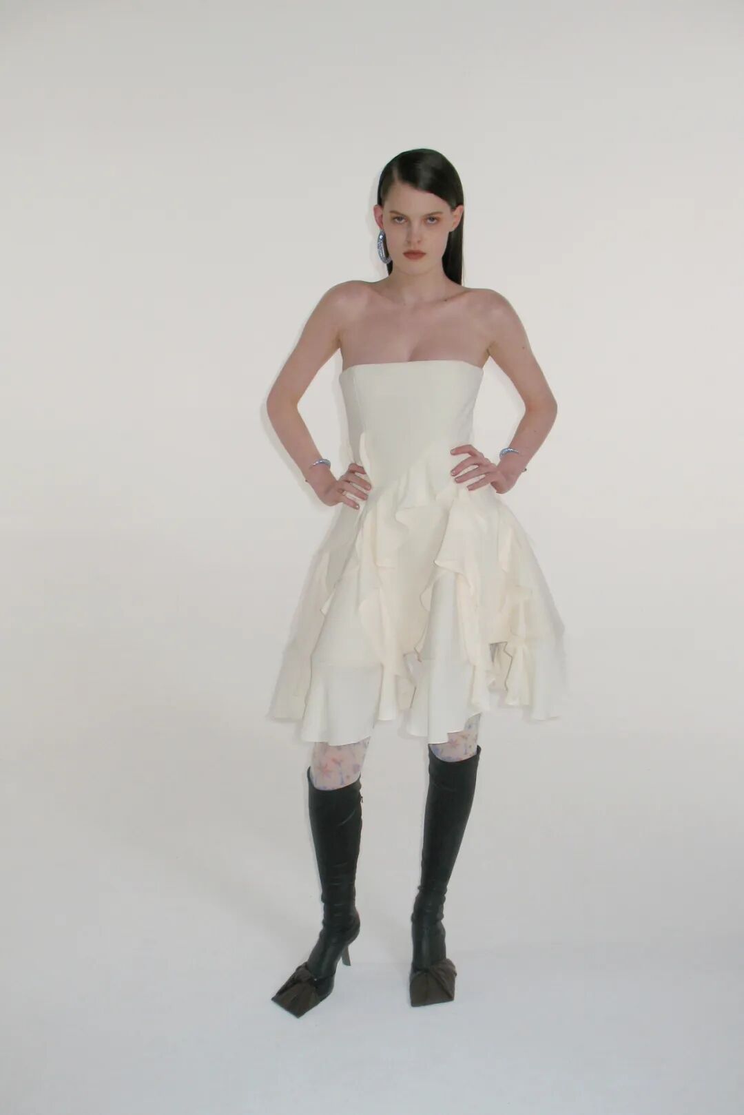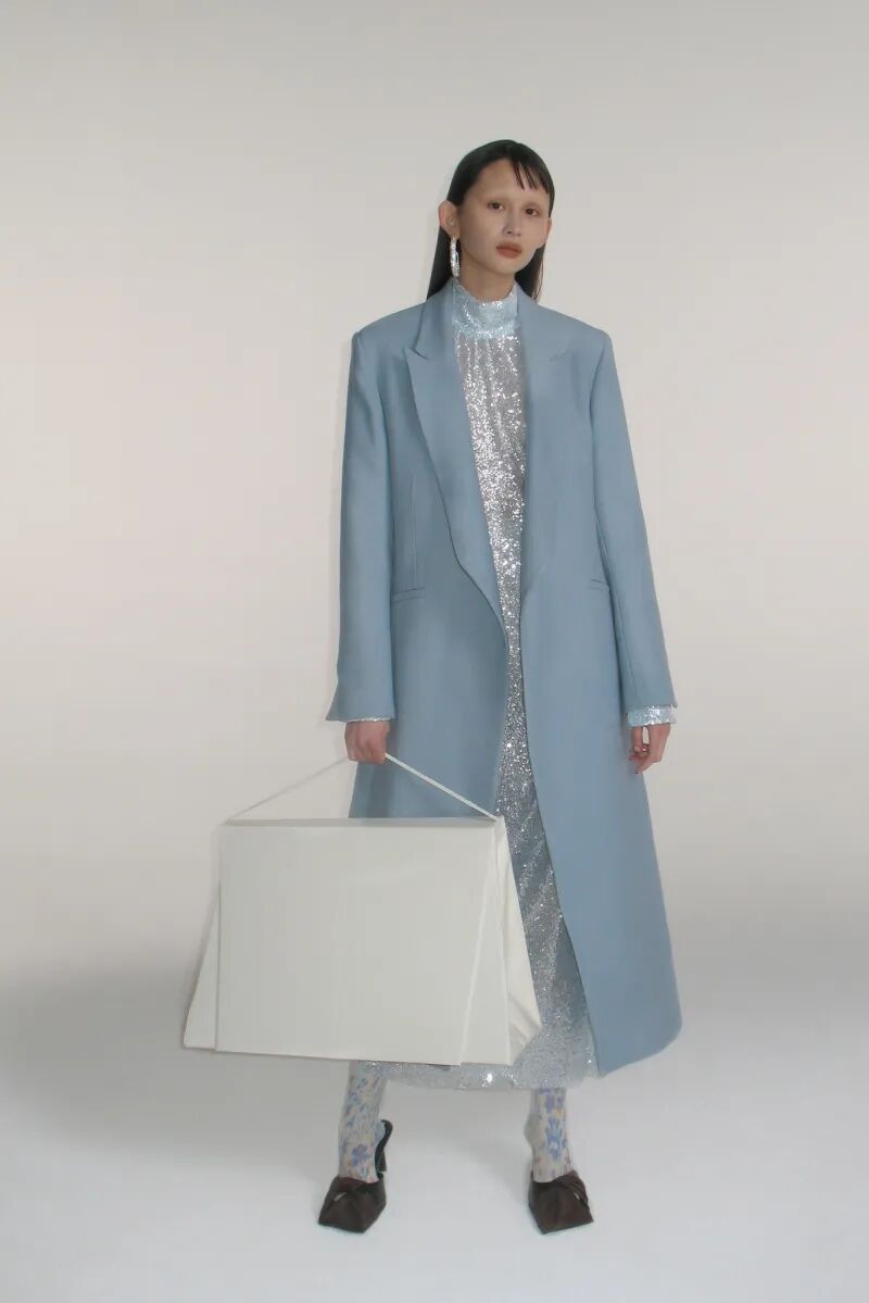 此系列是向Capaldo逝去的爱妻Cavenati的致敬,系列设计以轻盈的服装款式,冷色调以及90 年代极简主义风格为主。既体现了Cavenati独特的空灵气质,也体现了该品牌一贯如羽毛般轻盈的风格特点。