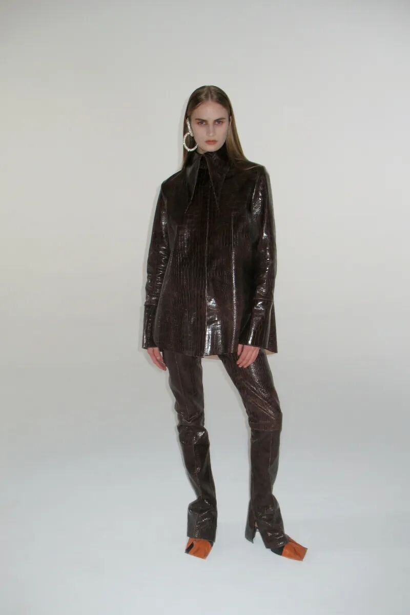 具有夸张衣领的衬衫是品牌的主打产品,领尖可延伸到肩部之外,作为内搭可以巧妙的伸出外衣丰富服装层次,赋予服装一丝俏皮感。