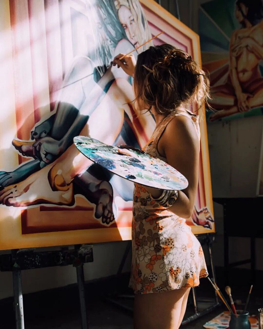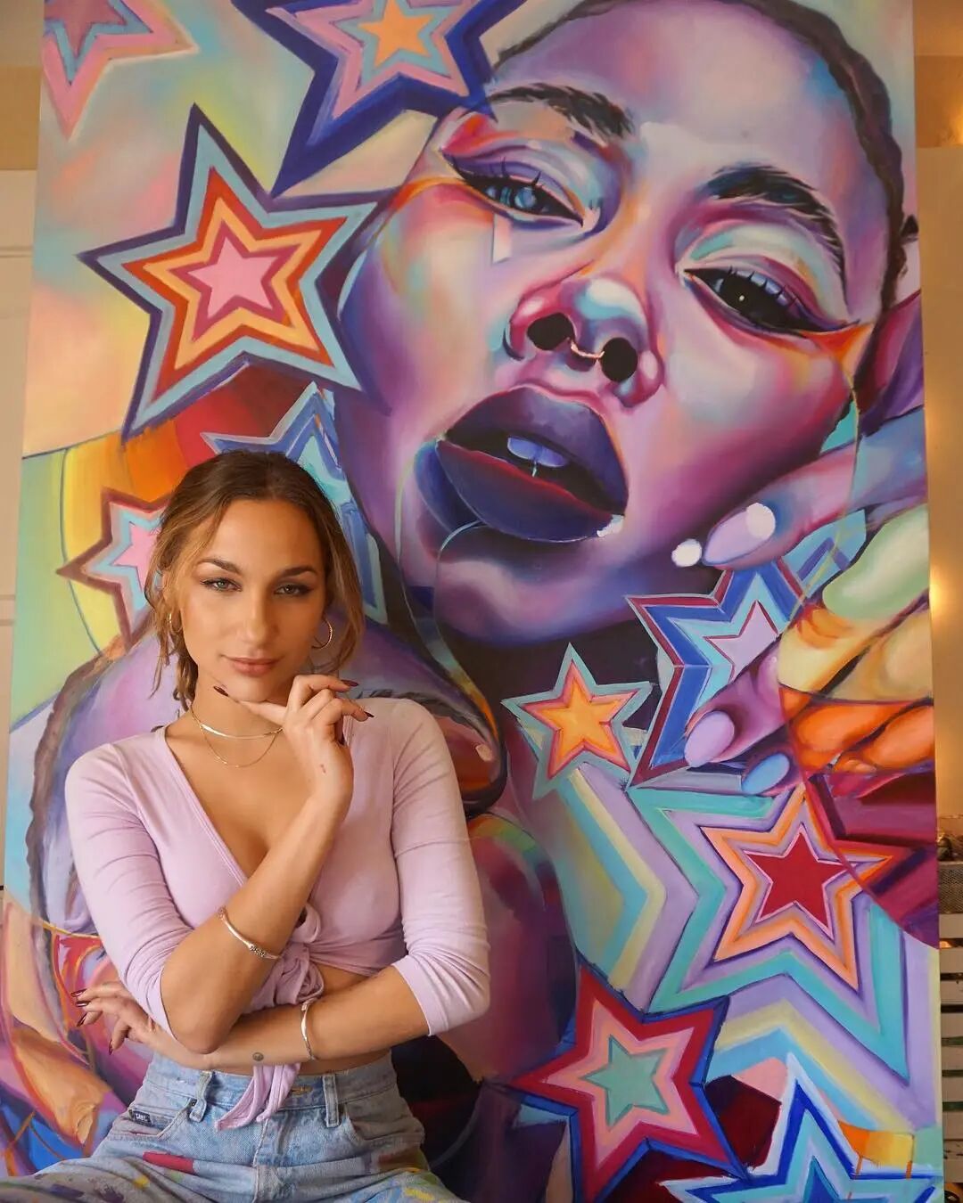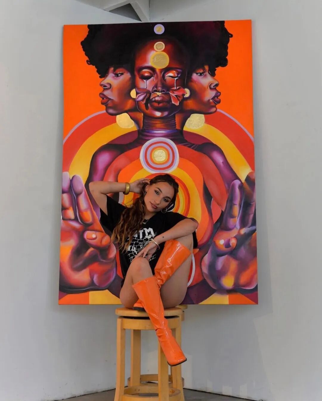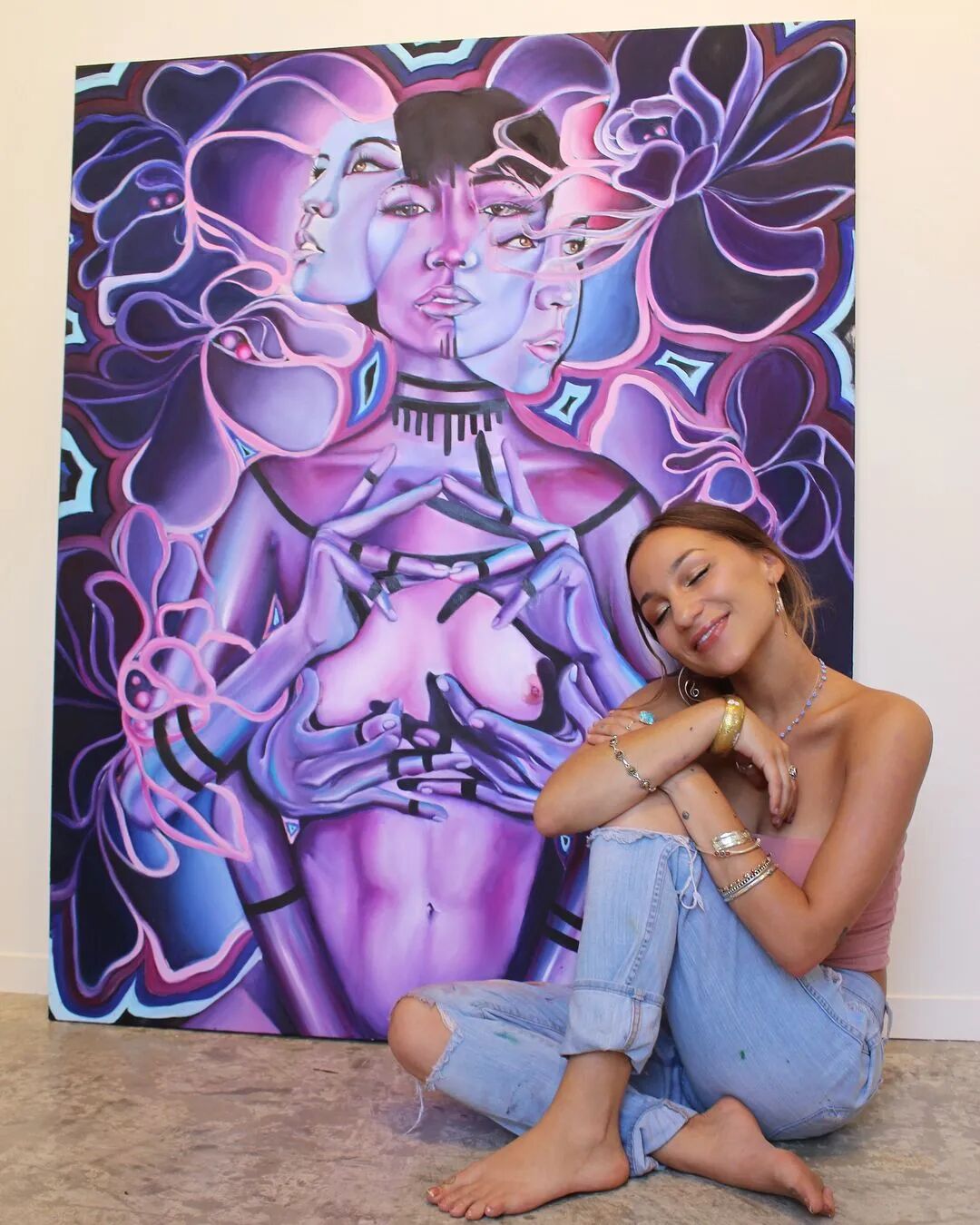 Riley A. Polek-Davis通过色彩和动作表达女性形象,作品深入探讨了神圣的女性本质、能量和原则。她希望不仅能揭示女性的美丽和力量,还能揭示我们存在的无限性,以及人类形式中存在的灵性。