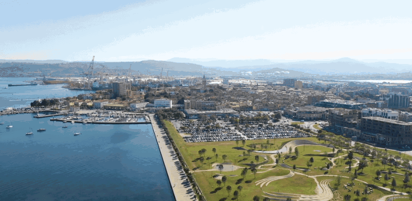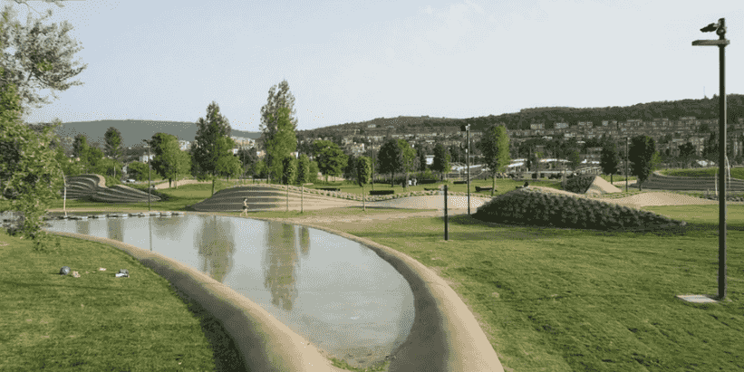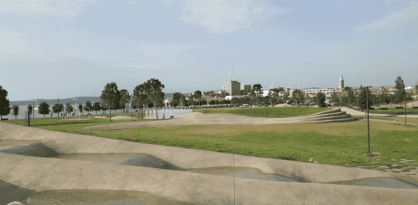 这个占地26000平方米的公园旨在将其周围的环境统一起来,其中包括一个海滨长廊和一个正在进行重建的城镇部分。
