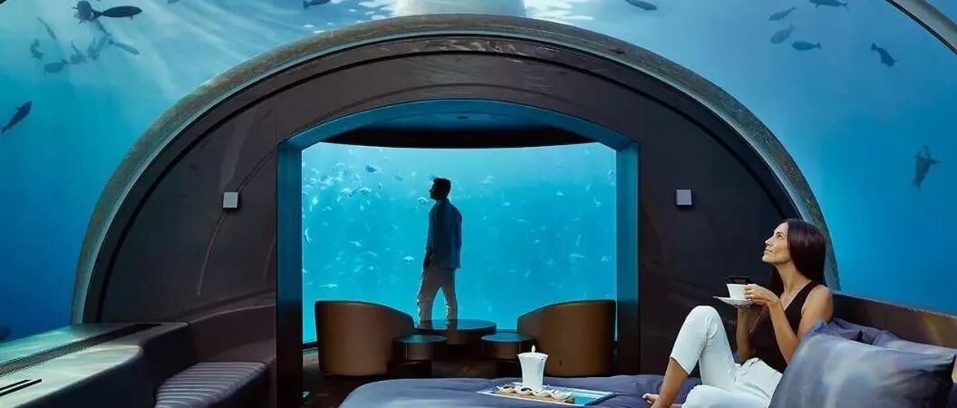 马尔代夫康莱德的水下客房,玻璃用18厘米厚,住一晚要 15 万